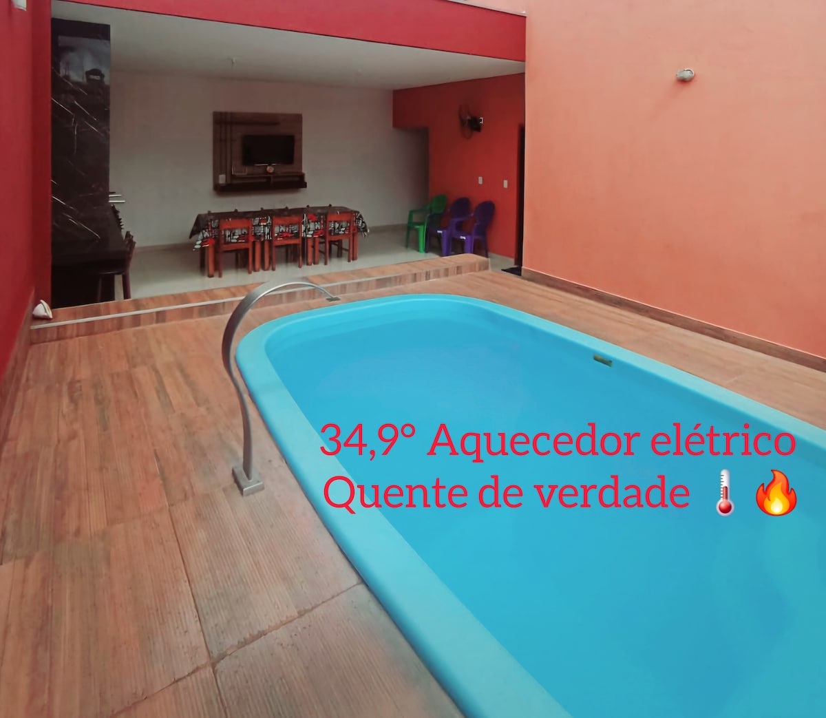 Sezonowy dom z przestronną i przytulną przestrzenią, może pomieścić do 10 osób, a może być rozbudowany do 12 Klimatyzowane pokoje i wentylatory, z 1 apartamentem. Dostęp do Wi-Fi Przestrzeń na zewnątrz z grillem. PODGRZEWANY BASEN do relaksu i parking dla 4 samochodów. Dom jest w świetnej lokalizacji! Blisko supermarketów, apteki, restauracji, pizzerii A przede wszystkim w pobliżu Parków Termalnych Laranjais, Hot Beach i Doliny Dinozaurów. Działaj szybko! Chodź tutaj!