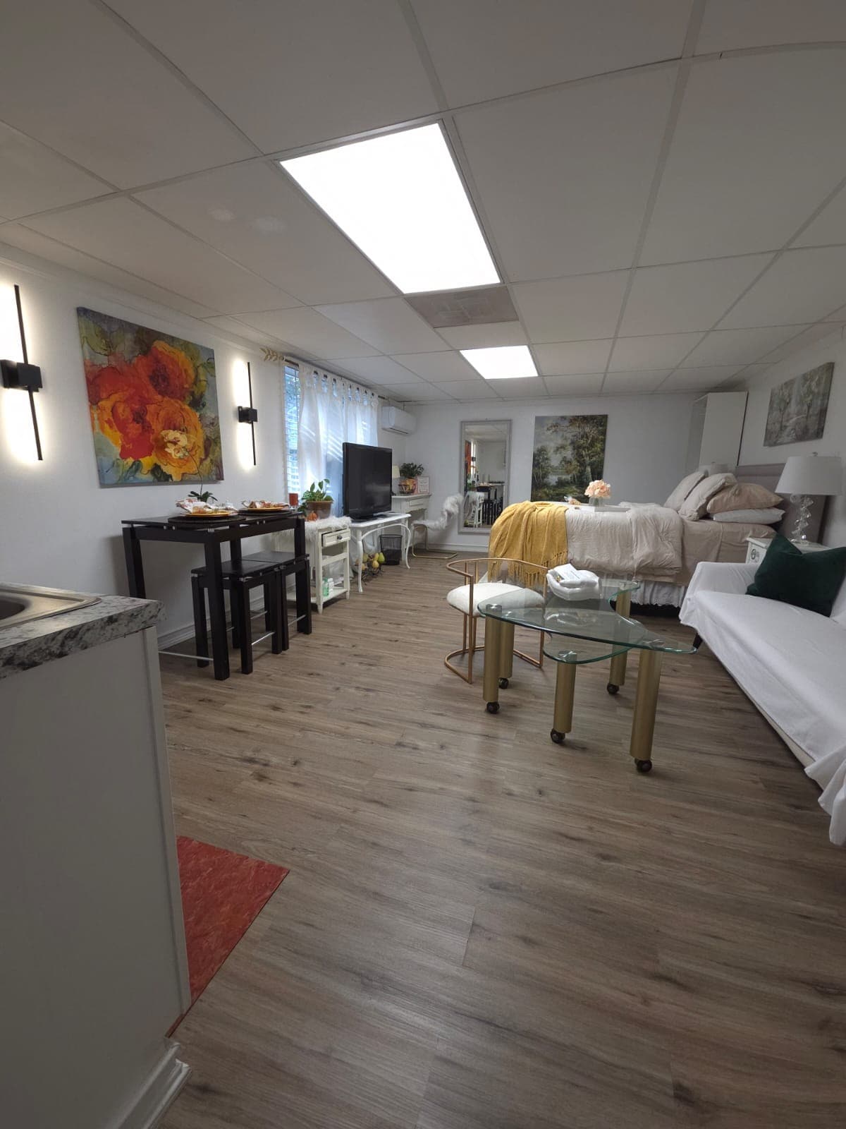 Lepsze niż większość hoteli. PRYWATNY apartament z oddzielnym wejściem i prywatnym ogrodzonym podwórkiem. Prywatny apartament z łazienką (bez prysznica stojącego) Ogromna wanna lodówka/zamrażarka kuchenka mikrofalowa, frytkownica powietrzna, płyta grzewcza, toster i ekspres do kawy K cup. Łóżko typu Queen, wysokiej jakości pościel, kanapa i stół, komoda i szafa. Meble ogrodowe, grill i palenisko. Piękna i spokojna lokalizacja. ZWIERZĘTA DOZWOLONE z opłatą za zwierzę w wysokości 25 USD dziennie