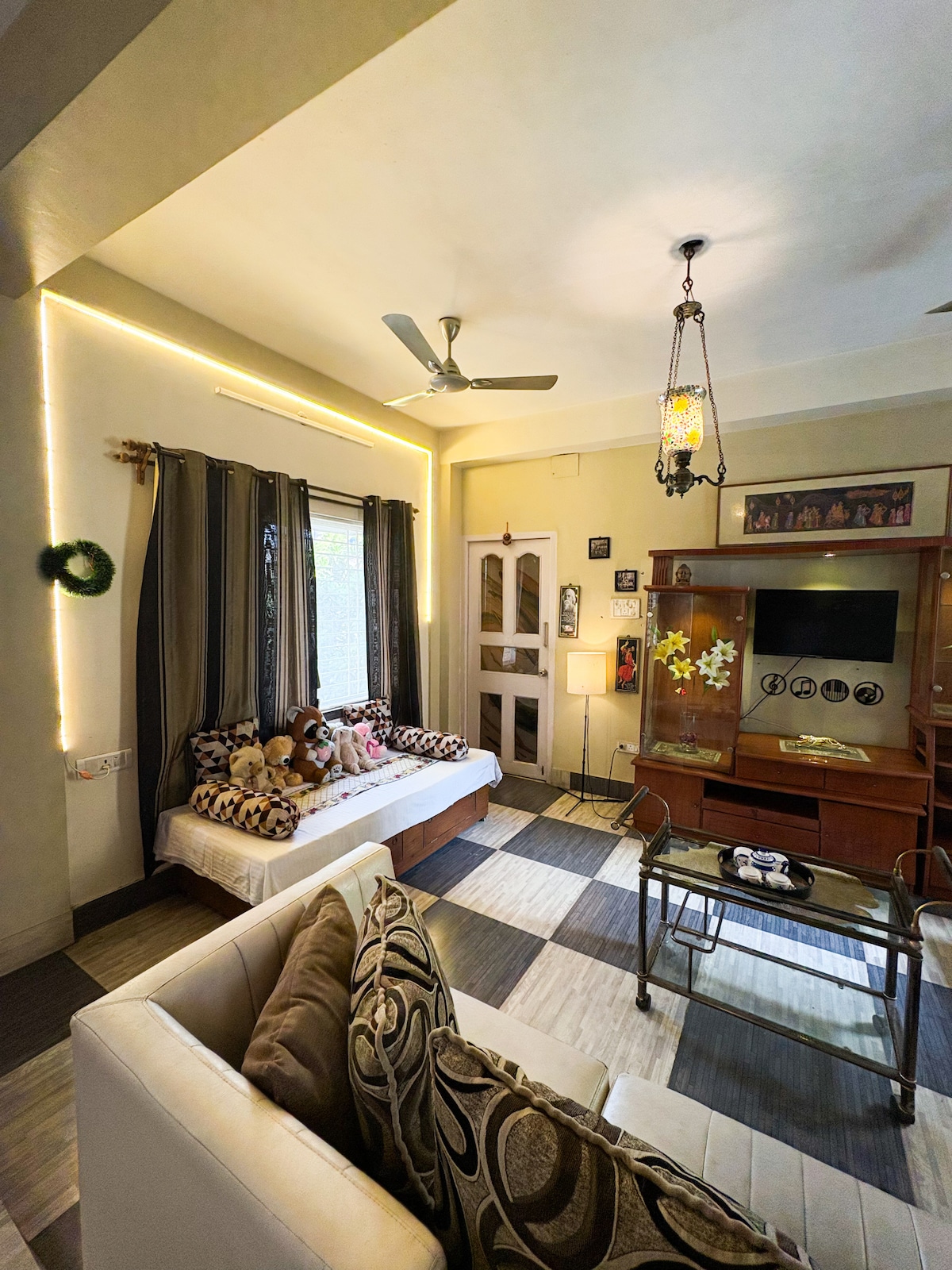 Jedna sypialnia 1000 stóp kwadratowych prywatne mieszkanie w Ballygunge z widokiem na główną drogę Zameldowanie 13:00 i wymeldowanie 11:00 ŚCIŚLE Opłata za 3. osobę Dekoracja wydarzeń i imprez możliwa za dodatkową opłatą w domu 1 piętro po schodach i bez windy, więc nieodpowiednie dla osób starszych. Palenie dozwolone Gość pokryje koszty szkód 1 łazienka Kuchnia wyposażona w lodówkę, indukcję, mikrofalówkę, przybory kuchenne, toster, czajnik i aquaguard Wi-Fi 175 Mb/s Logowanie do telewizora Smart TV za pomocą danych uwierzytelniających gościa Goście muszą przedstawić ważny dokument tożsamości. Płatny parking (birla mandir)