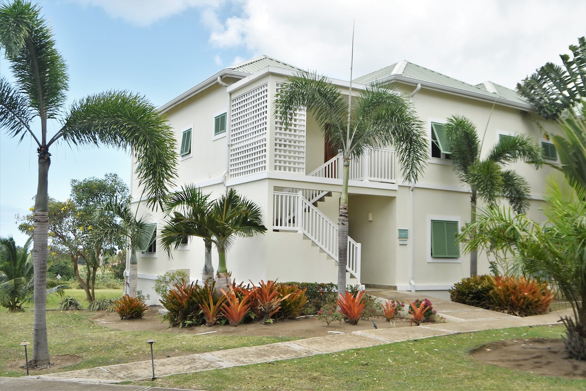 Ten luksusowy apartament z dwiema sypialniami i dwiema pełnymi łazienkami znajduje się w bardzo cichej i doskonale zlokalizowanej, bezpiecznej okolicy w strategicznym miejscu na wyspie St. Kitts. Goście mają dostęp do 3 basenów (prawie zawsze pustych), miejsca na grilla i rozległych ogrodów. Nieruchomość ma otwarty plan z 3 tarasami z widokiem na morze. Około 7 minut spacerem od najbliższej plaży i w odległości spaceru od dziesiątek restauracji i sklepów. Wyspiarski klub golfowy znajduje się zaledwie 5 minut drogi. Na sofie mogą spać dodatkowe 2 dzieci