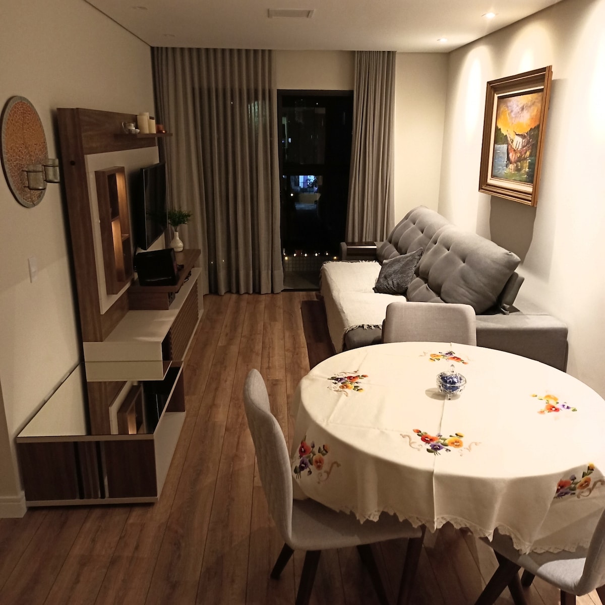 9º andar - 43m - Bairro Nobre - Wyśmienity balkon z grillem - NOWA i super wygodna sofa - Pełna kuchnia - Klimatyzacja ciepła i zimna - SmarTv - Przestrzeń garażowa - Pełna kuchnia - Wysokiej jakości Wi-Fi - Filtr oczyszczający wodę UWAGA: nie zarządzamy obszarami socjalnymi w kondominium. Obsługa tych obszarów może zostać przerwana w celu konserwacji bez uprzedniego powiadomienia. Jeśli tak się stanie, nie otrzymasz zwrotu kwot.