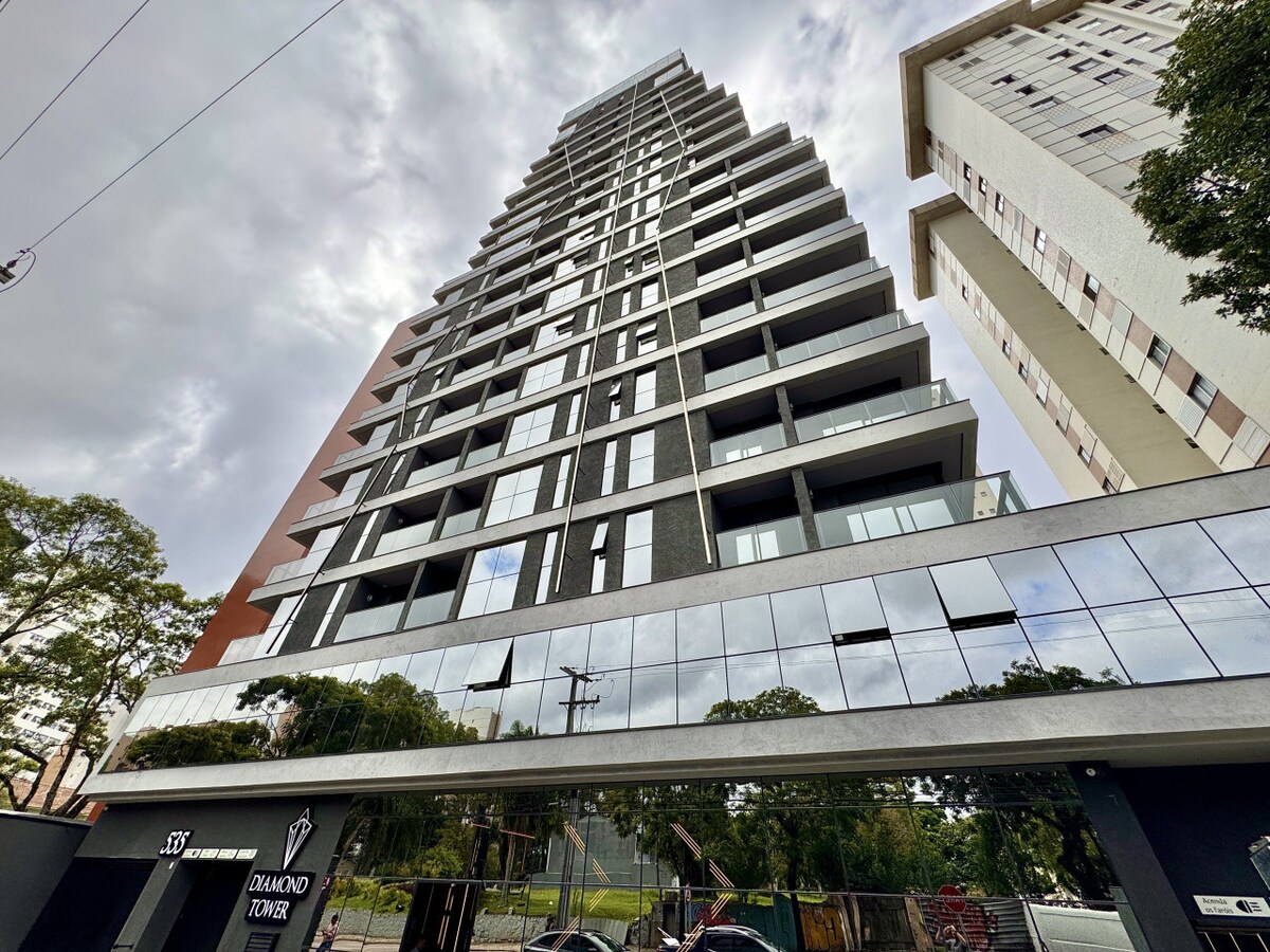 Studio Premium no luxuoso Diamond Tower, Batel. Acomoda até 2 pessoas com cama de hotel, ar-condicionado, cozinha equipada e enxoval 5 estrelas e uma sacada deliciosa. 🚗O imóvel possui garagem com serviço de valet, incluso na estadia como cortesia. É necessário deixar a chave do veículo com os manobristas. Prédio incrível com coworking, rooftop com vista deslumbrante e lavanderia. Atendimento Urooms 24h. Viva Curitiba com conforto e estilo!