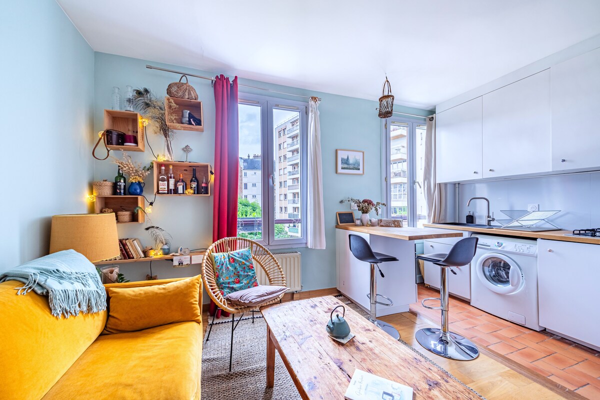 Charming and cozy flat of 50 m2 located in the heart of the Batignolles Village (17th arrondissement) at a walking distance from parks, shops, restaurants, and bars. Batignolles is a very authentic area, it provides the perfect setting to enjoy Parisian life. Designed for 2 people, the apartment features a living room with a fully equipped open kitchen and a dinning table, a bedroom, a bathroom and separated toilet. Every detail has been carefully considered to offer optimal comfort, whether for