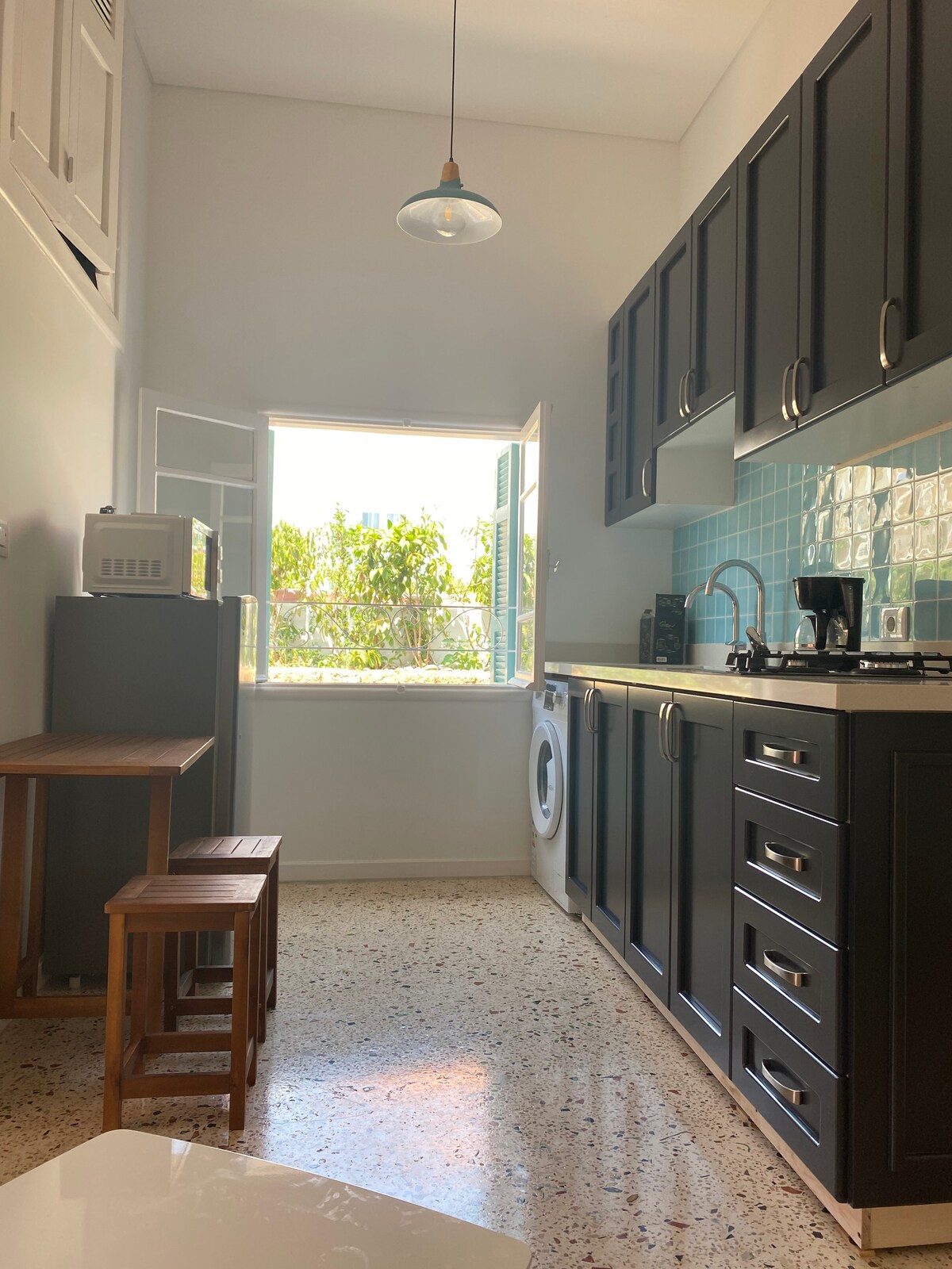 Batroun Vibes is a Newly renovated and Spacious Studio Apartment Located in the heart of Batroun City, in a quiet neighborhood and walking distance to almost everything located in the city. This guesthouse sits across from a historic, non-functional railroad, offering a peaceful stay with beautiful scenery and complete tranquility. Electricity is available 24/7.