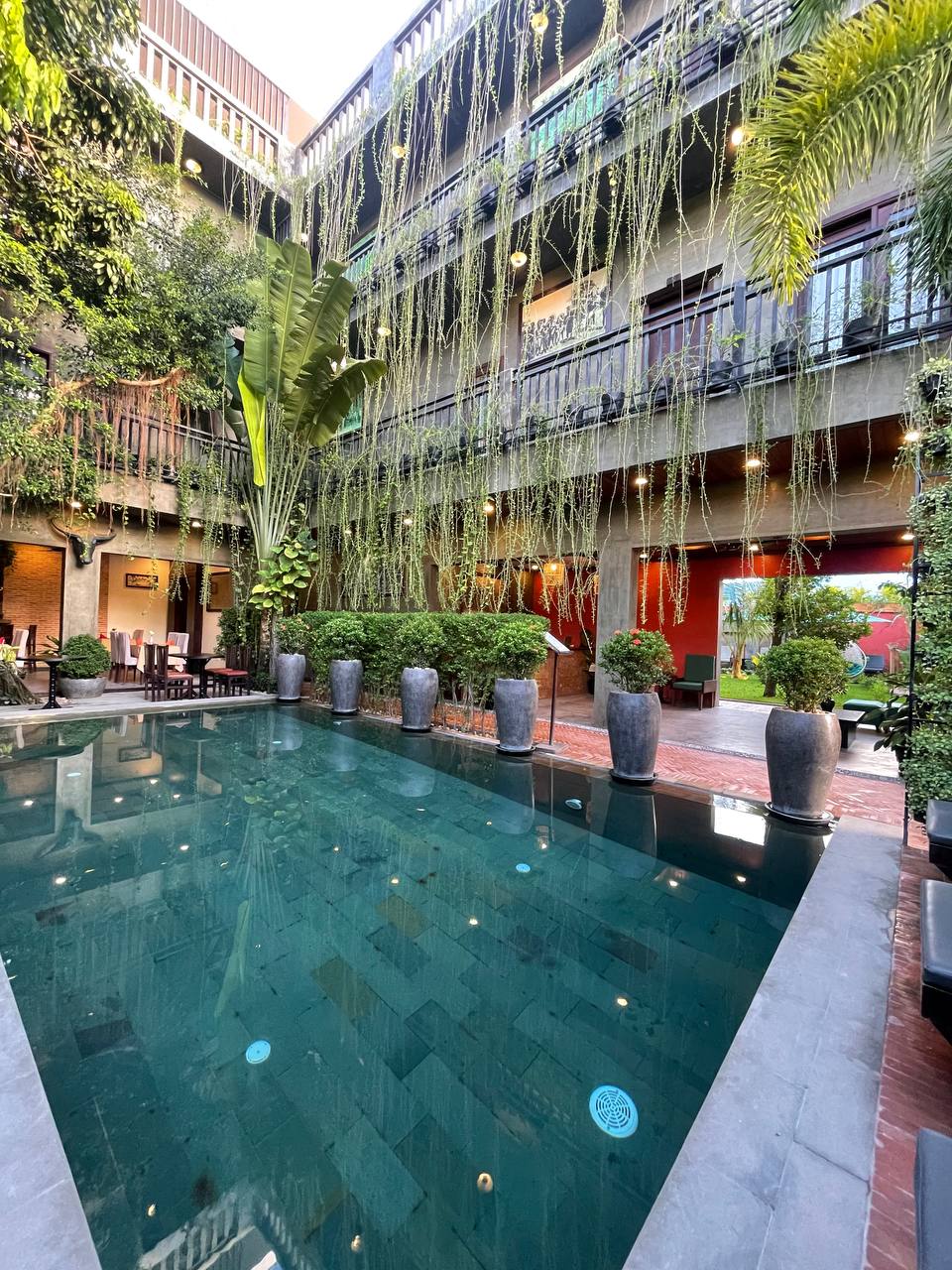 A spacious boutique home of 5 bedrooms with a private pool, built in a unique style of Khmer and Western architecture with an oasis ambiance, located near the largest local market of Siem Reap, only 10 minutes from downtown Pub Street, and 15 minutes to the marvelous Angkor Wat. This beautiful villa is ideal for a group or a family to enjoy a private stay and feel as if you are at home. Authentic Khmer meals, transport/guided tours, and airport transfers could be arranged during the stay.