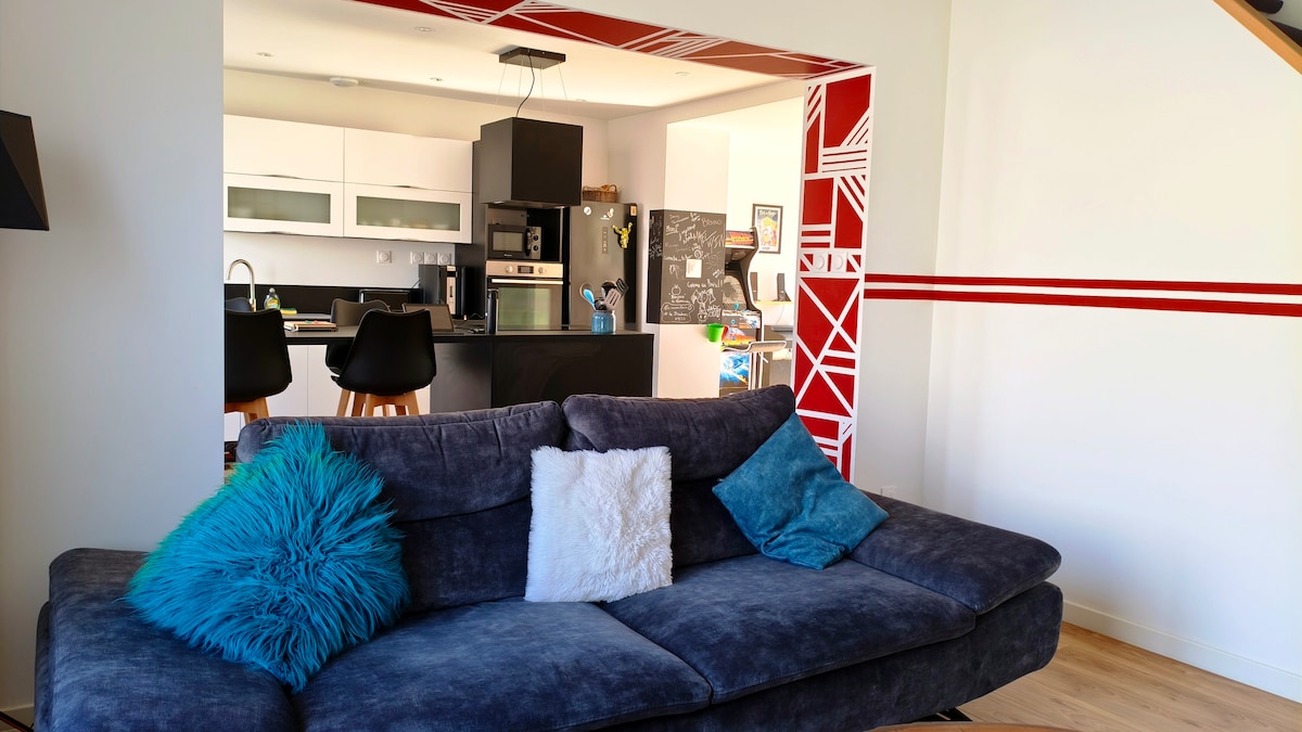 Odkryj najwyższy komfort w naszym mieszkaniu o powierzchni 80 m2, położonym między Luwrem Lens a stadionem Lens. Skorzystaj z 2-osobowego jacuzzi z 95 dyszami, telewizora OLED 4K o przekątnej 165 cm. Wyposażona kuchnia. Łazienka oferuje włoski prysznic, wiszące toalety, lusterko LED z funkcją zapobiegania parowaniu i suszarkę na ręczniki. W pokoju znajduje się duże łóżko 180x200 cm, podwieszona siatka 10 m2 z płótnem 260 cm, sofa, stolik kawowy, ekspres Nespresso, projektor wideo UHD 4K HDR