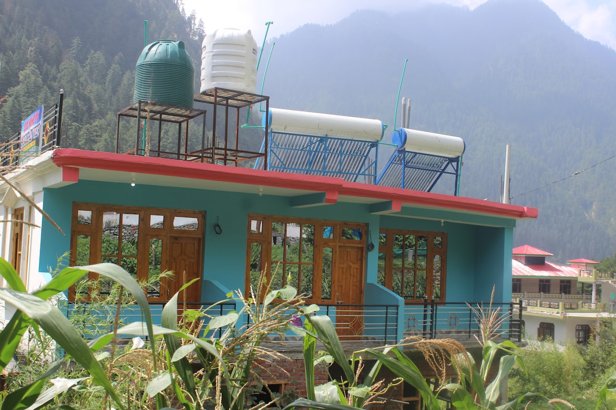 Ideal for group of friend or extended family, this cottage with two bedroom will be a home away from home for you. With its central location in the beautiful small hill town of kulu valley, you can comfortably have a day trip to Kasol valley or day trip to Manali. Local buses available at the doorstep will save you time and money. Spacious two bed room with access to living area , and a terrace with splendid view of the valley and the snow-peaked mountains will surely make your stay memorable.