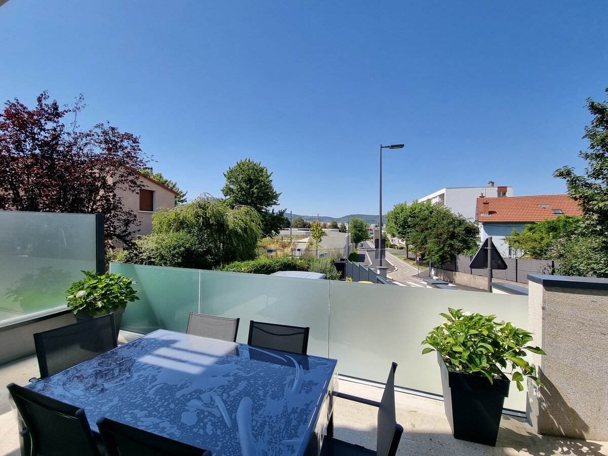 Mieszkanie o powierzchni 40 m2 znajduje się w oddzielnym domu podzielonym na dwa mieszkania. Ten został całkowicie odnowiony, znajduje się w spokojnej uliczce, z dala od hałasu miasta, ale idealny do zwiedzania centrum miasta i okolic Clermont-Ferrand. Uwiodą Cię ciepła atmosfera, inteligentny wystrój. Obiekt znajduje się 5 minut jazdy od Place de Jaude, szpitala uniwersyteckiego im. Gabriela Monpieda (10 minut spacerem) i kliniki La Chateigneraie.