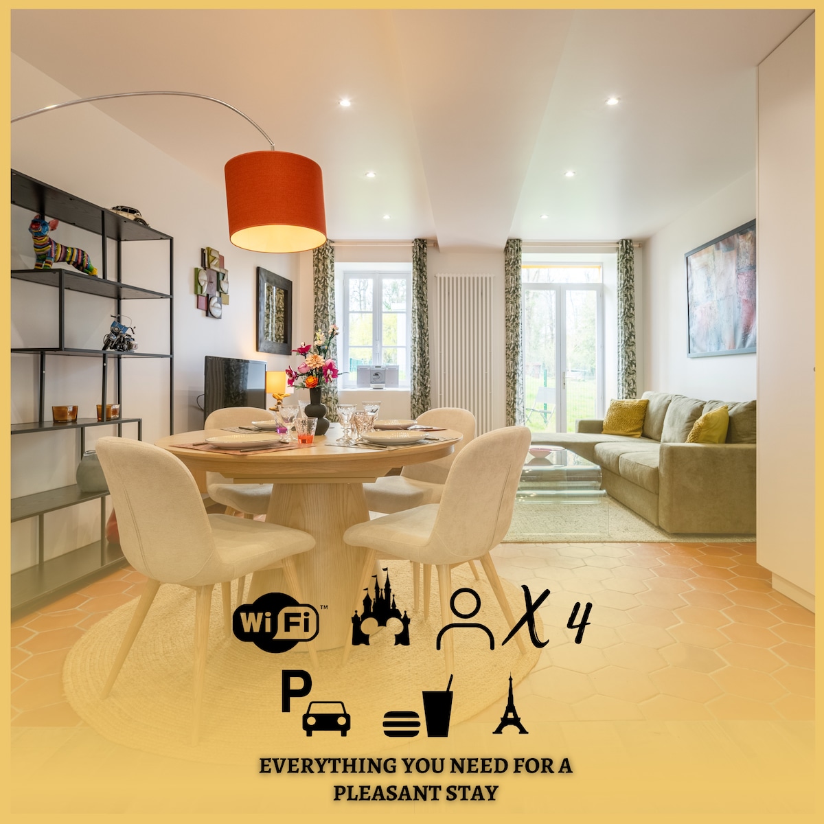 Nous vous invitons à découvrir notre maison de ville moderne dont le projet a été réalisé par la société AKS Design, de nombreux équipements sont à votre disposition pour vous offrir un moment de détente et de bien-être à seulement une dizaine de minutes en voiture de Disney et la vallée Village. Nous pouvons organiser: arrivée romantique où répondre à toute demande particulière. N’hésitez pas à nous consulter.