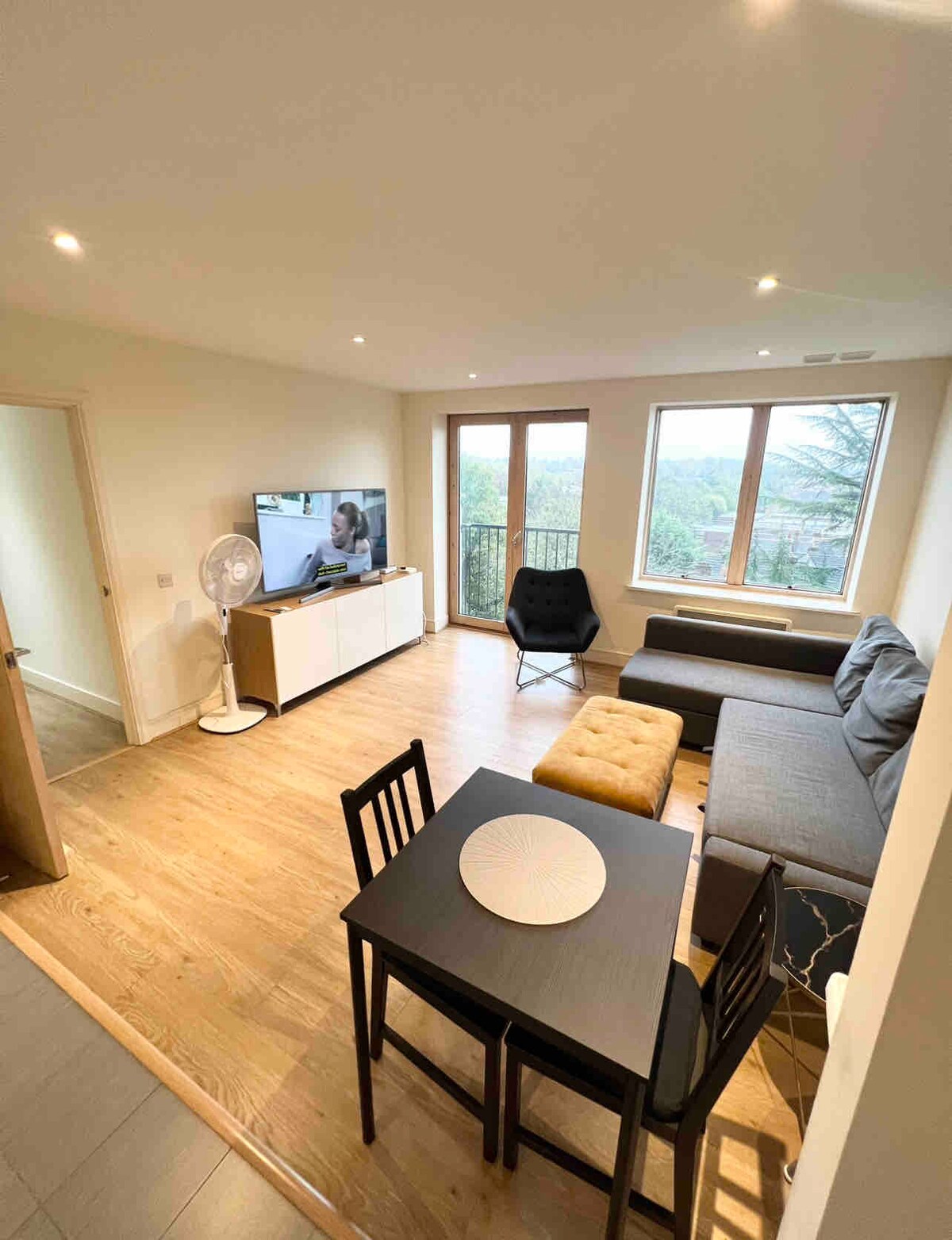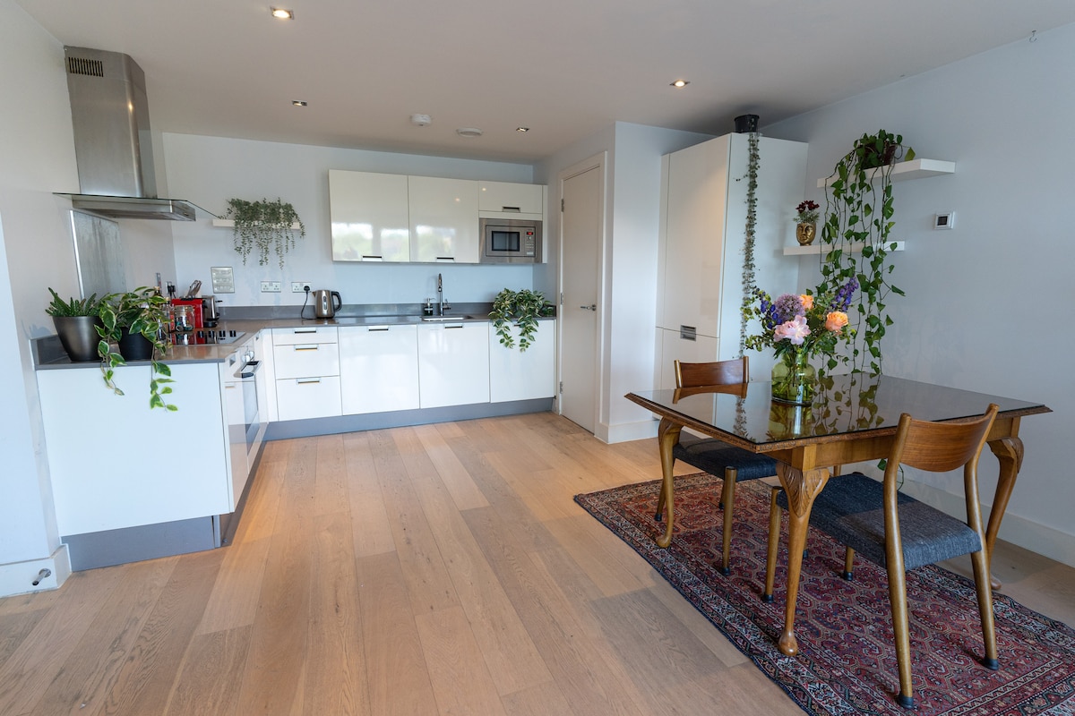 Doświadcz komfortu i wygody w tym stylowym apartamencie z dwiema sypialniami, idealnie położonym zaledwie 3 minuty spacerem od stacji Lower Sydenham - z bezpośrednimi pociągami do London Bridge w zaledwie 15 minut. Korzystaj z wspólnej/całodobowej siłowni i centrum pracy z Wi-Fi. Zrelaksuj się na prywatnym balkonie z zestawem wypoczynkowym i stołem. Możesz też zrelaksować się we wspólnej przestrzeni na świeżym powietrzu lub odwiedzić pobliską zieloną przestrzeń lub spacer po zielonym łańcuchu. Ciesz się połączeniem spokoju i funkcjonalności dla maksymalnie 4 gości.