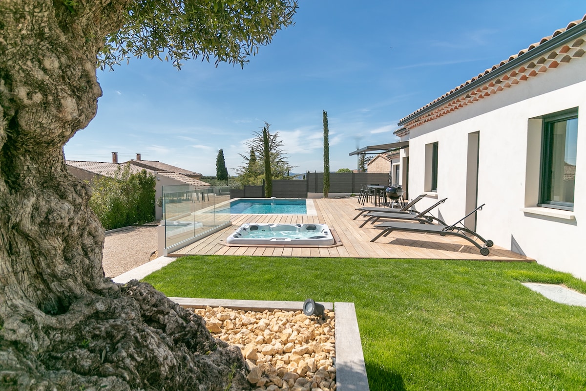 „La Maison aux Oliviers” to mały, urokliwy, klimatyzowany, niezależny dom o powierzchni 90 m2, położony na terenie starej gaju oliwnego, w spokojnej okolicy, w ogrodzie krajobrazowym z pięknym, ogrzewanym i zabezpieczonym basenem. Duża markiza pozwala na spędzanie czasu na świeżym powietrzu, chroniąc przed słońcem i wiatrem (mistralem). W pobliżu zabytkowego centrum, lokalnego targu i sklepów (w odległości spaceru), jest doskonale wyposażony do pracy zdalnej (szybkie łącze światłowodowe)
