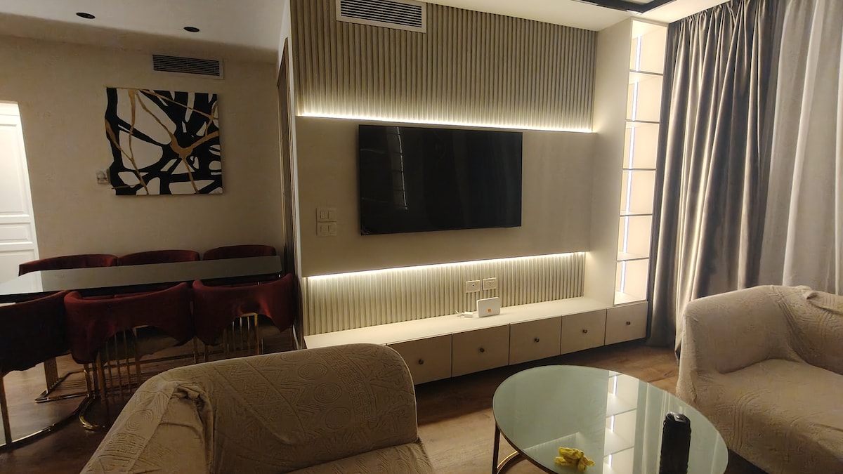Odkryj współczesny luksus w tym ultranowoczesnym apartamencie z trzema sypialniami i oszałamiającym widokiem na morze w Aleksandrii. Ciesz się przestronnym salonem, jadalnią i w pełni wyposażoną kuchnią. W apartamencie znajduje się stylowa łazienka z toaletą i piękną kabiną prysznicową. Zrelaksuj się na balkonie z zapierającym dech w piersiach widokiem na morze. Wygodnie położony w pobliżu najpopularniejszych atrakcji, restauracji i rozrywki, ten apartament oferuje najlepsze połączenie wygody i elegancji.