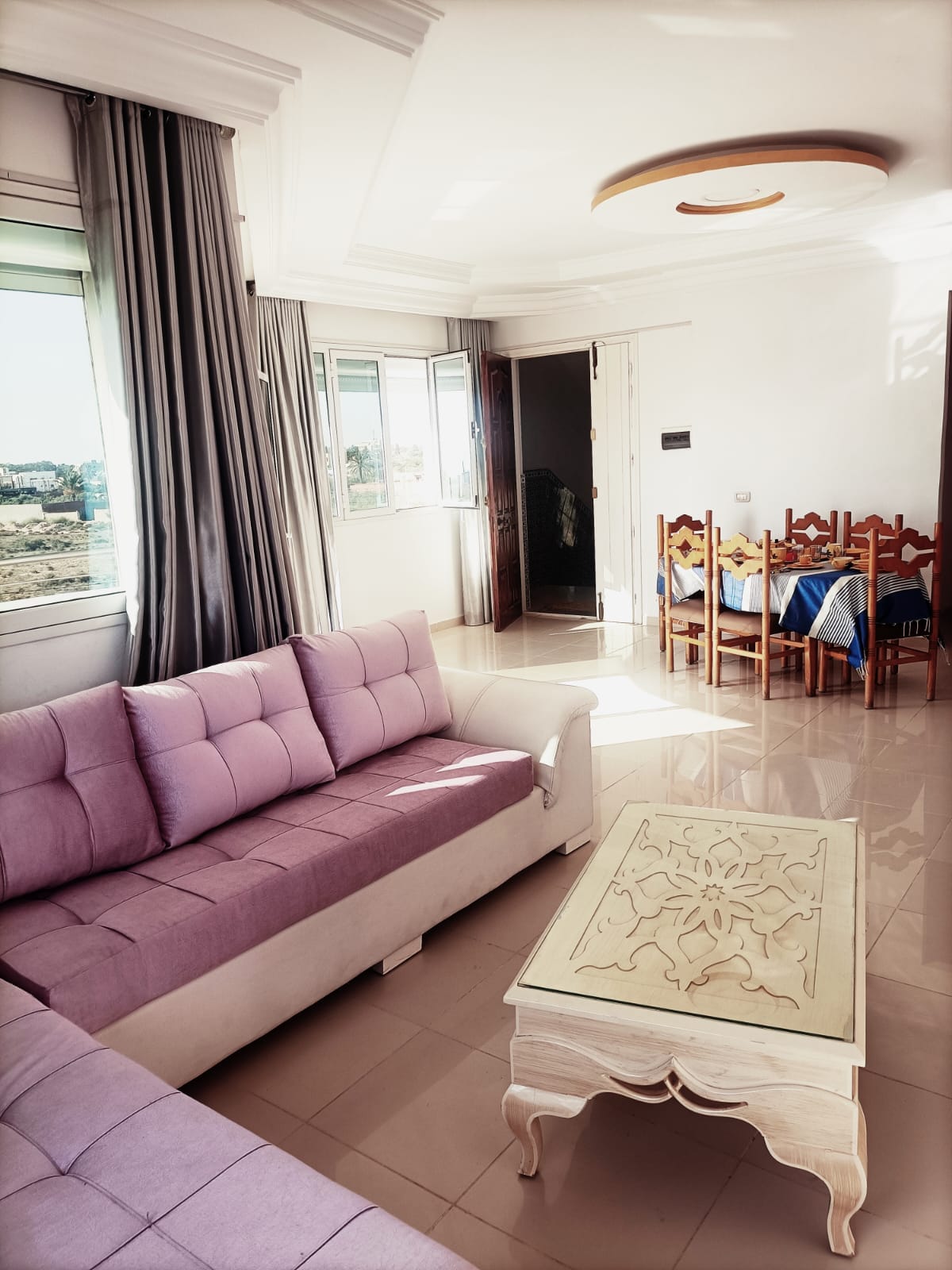 Apartament Lina w Mahdii Bardzo cicho, W rezydencji z concierge i kamerami. Idealnie położony w pobliżu plaży i udogodnień (kawiarnia-restauracja, park wodny, supermarket). - Klimatyzacja w całym obiekcie - Wyposażona kuchnia z jadalnią - Wi-Fi. -Amazon Prime – Widok na morze i miasto - Prywatny parking podziemny Idealne na wakacje lub dłuższy pobyt, łączące komfort, spokój i doskonałą lokalizację. Ciesz się spokojem i stylową atmosferą podczas niezapomnianego pobytu nad morzem.