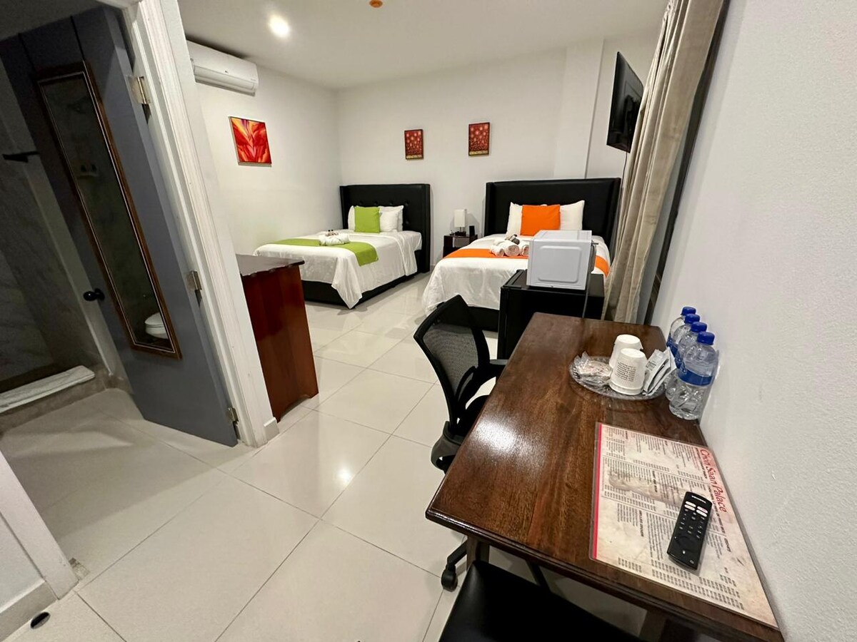 Jasny, przestronny pokój z dwoma łóżkami typu queen, klimatyzacją, prywatną łazienką i miejscem do pracy. Idealne miejsce na relaks po całym dniu zwiedzania. Położony w tropikalnym otoczeniu z dostępem do tętniącej życiem kuchni i jadalni na świeżym powietrzu. Zaledwie 20 minut od lotniska i 15 minut od Altun Ha, w pobliżu Belize Zoo, Crooked Tree Wildlife Sanctuary i Belize City. Idealne dla rodzin, przyjaciół lub osób podróżujących w pojedynkę. Prywatny pokój; na terenie obiektu mogą przebywać inni goście. Spokojny i niedrogi wypoczynek. Zarezerwuj pobyt już dziś!