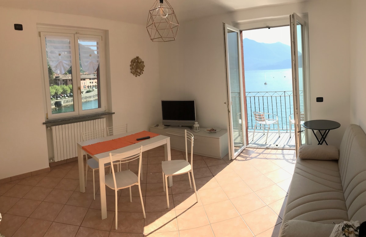 Appartamento appena rinnovato, direttamente sull'acqua, vista mozzafiato del lago di Como e delle montagne circostanti. Situato nel centro di Bellano. Soggiorno spazioso con cucina attrezzata, confortevole camera matrimoniale con vista lago, seconda camera con 2 letti singoli, bagno con doccia. Terrazzo soleggiato sull'acqua, con tavolo e sedie per rilassarsi e godersi la vista. WI.FI illimitato,TV-SAT. SANIFICAZIONE AD OZONO prima di ogni soggiorno.
