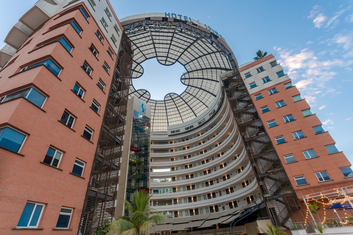 Nasz hotel znajduje się w Cali, w uprzywilejowanej okolicy otoczonej sześcioma parkami, w tradycyjnej i spokojnej dzielnicy El Ingenio, na południe od metropolii, w pobliżu ważnych centrów handlowych, kampusów uniwersyteckich i klinik. Wyróżnia się nowoczesną architekturą, eleganckim wzornictwem, awangardowymi przestrzeniami i wykończeniem z materiałów szlachetnych, takich jak marmur i drewno. Pokoje są przytulne, nieskazitelnie czyste, wygodne, z balkonami i tarasami.