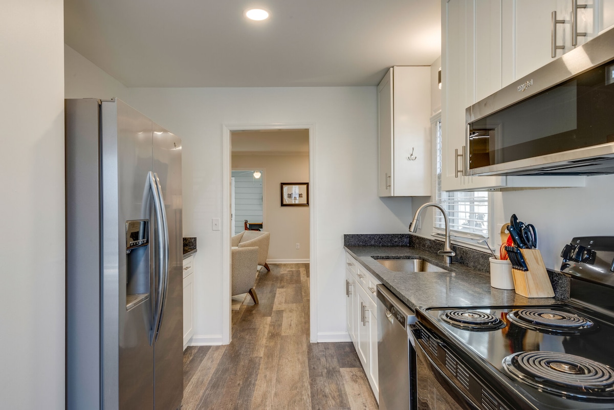 Przynieś tacę orzeźwiających napojów na osłoniętą werandę z widokiem na zieloną trawę i dojrzałe drzewa. Drzwi francuskie powinny być otwarte, aby powietrze przepływało przez cały dom. Nowoczesne meble współpracują z akcentami w stylu vintage, aby stworzyć przyjazną atmosferę. Zezwolenie nr 2018070128 Nasz dom z 3 sypialniami/2 łazienkami jest przyjazny dla rodzin i grup.