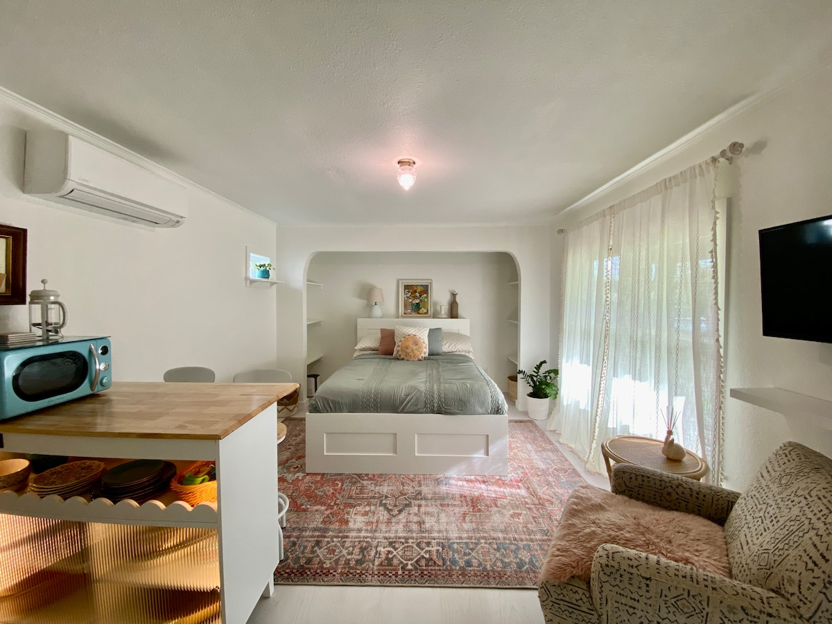 Witamy w naszej wygodnej, przytulnej, w pełni umeblowanej casita w naszej pięknie zaprojektowanej, urokliwej, zabytkowej dzielnicy! Ten apartament typu studio jest przeznaczony TYLKO dla JEDNEGO (1) GOŚCIA z parkingiem poza ulicą, łatwym dostępem do tarasu przypominającego zen i grillem gazowym. Jesteśmy 5 minut do Lucy Pk, 10 minut od centrum lub MSU i 10 minut do SAFB. Ciche i spokojne, bezpieczne miejsce idealne do spacerów, biegania lub jazdy na rowerze. Twoi goście są mile widziani, jednak nie mogą zostać na noc. Nie rób żadnych wyjątków bez kary.
