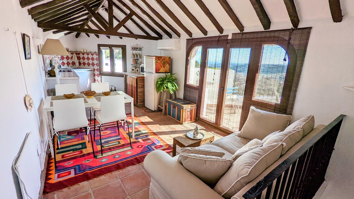 SPOKÓJ, CISZA I NATURA Przytulny domek z kamienia, wapna i drewna. Odzyskany z przeszłości, abyś mógł się nim cieszyć i przeżyć kilka dni pełnych ciszy i spokoju. W domu mieszczącym dwie osoby znajduje się salon z kominkiem, jadalnia i w pełni wyposażona kuchnia kuchnia na pierwszym piętrze. Pokój i łazienka, usytuowane na pięknej poddaszu, prowadzą na taras, z którego można podziwiać niesamowite widoki na dolinę Genal.