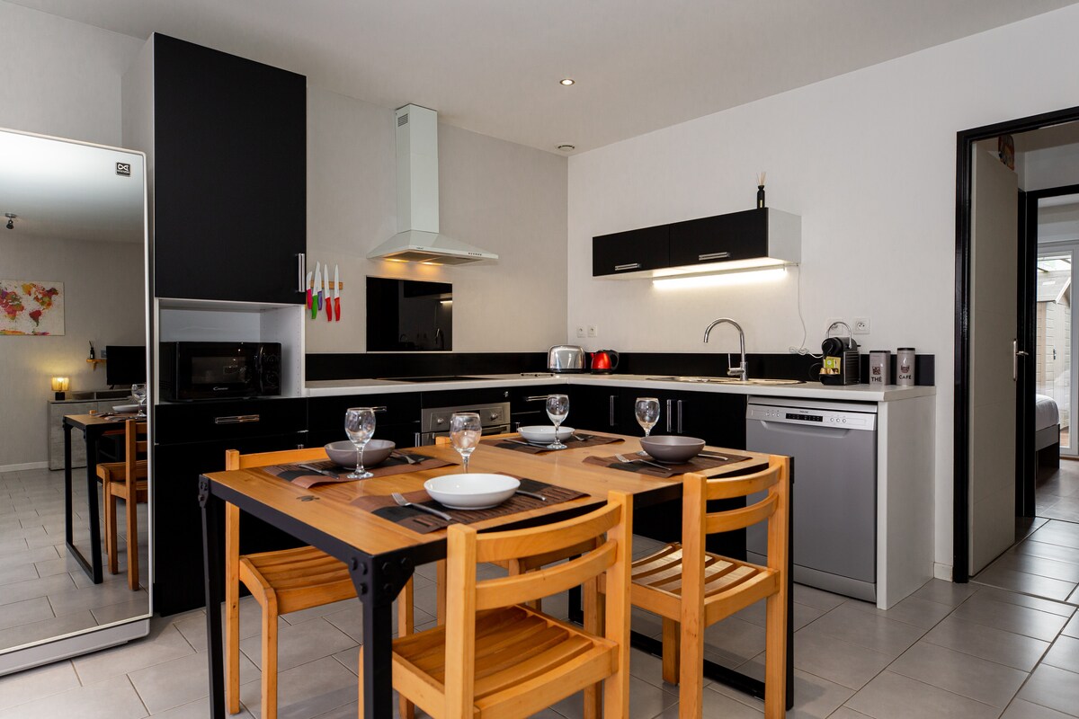 Marzysz o wakacjach wśród plaż i natury z przyjaciółmi i rodziną? Zapraszamy do nowoczesnego apartamentu w Bénesse-Maremne, idealnie położonego 10 minut od Capbreton i Hossegor oraz 20 minut od Biarritz, Anglet i Bayonne. Ciche, klimatyzowane i starannie wyposażone miejsce, idealne na pobyt związany z surfingiem, relaksem lub pracą. WARTO WIEDZIEĆ: ★ Dwa słoneczne tarasy ★ Klimatyzacja w salonie ★ Proste, szybkie samodzielne zameldowanie ★ 10 minut od plaż ★ Pościel i ręczniki hotelowe ★ Dwa miejsca parkingowe