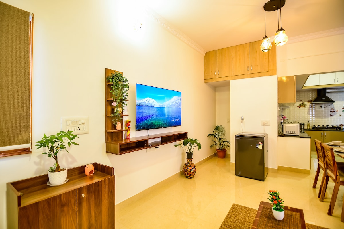 Welcome to Rua — Your Stylish Retreat in the Heart of HSR Layout, Sector 2! Discover a seamless blend of modern elegance and home-like comfort at Rua, a refined 1-bedroom apartment designed for both short and long stays. Enjoy 100 Mbps high-speed Wi-Fi, a private balcony, daily cleaning, a gourmet kitchen, and easy access to Koramangala, BTM, and more. Your perfect Bangalore stay awaits!
