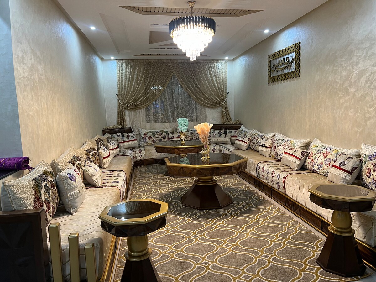 Nowoczesny i cichy apartament w Beni Mellal, idealny dla rodzin lub grup. Obejmuje duży marokański salon, mały amerykański salon, 2 sypialnie (dla 4 osób), w pełni wyposażoną kuchnię, prysznic i 3 duże balkony. Korzystaj z Wi-Fi, klimatyzacji, pralki, telewizora Smart TV z Netflixem i nowych urządzeń. Położony w spokojnej okolicy, w pobliżu sklepów. – bardzo ważne jest, aby przedstawić mi dokument tożsamości. – zakaz spożywania alkoholu w obiekcie.