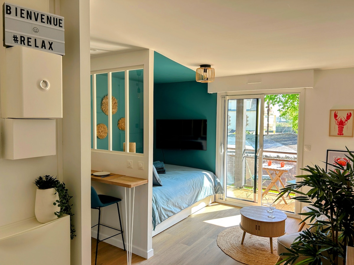 Studio cosy rénové – Plage à pied – Balcon