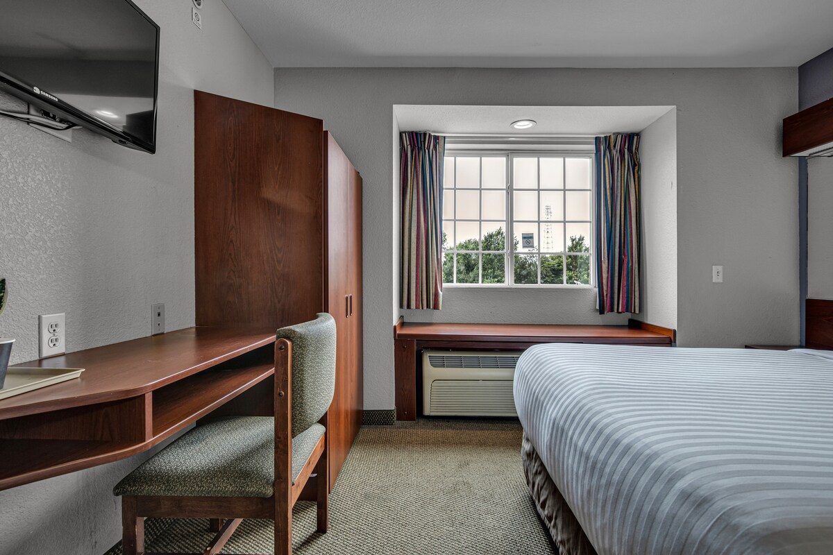 Wygodny apartament o otwartej przestrzeni z łóżkiem typu queen w oddzielnej sypialni, aneksem kuchennym z pełnowymiarową lodówką, kuchenką mikrofalową i zmywarką. Obejmuje przytulną sypialnię z biurkiem i telewizorem – idealną dla gości szukających wygody i wartości. Idealne na krótki i długi pobyt. Dostępna jest cotygodniowa usługa sprzątania.