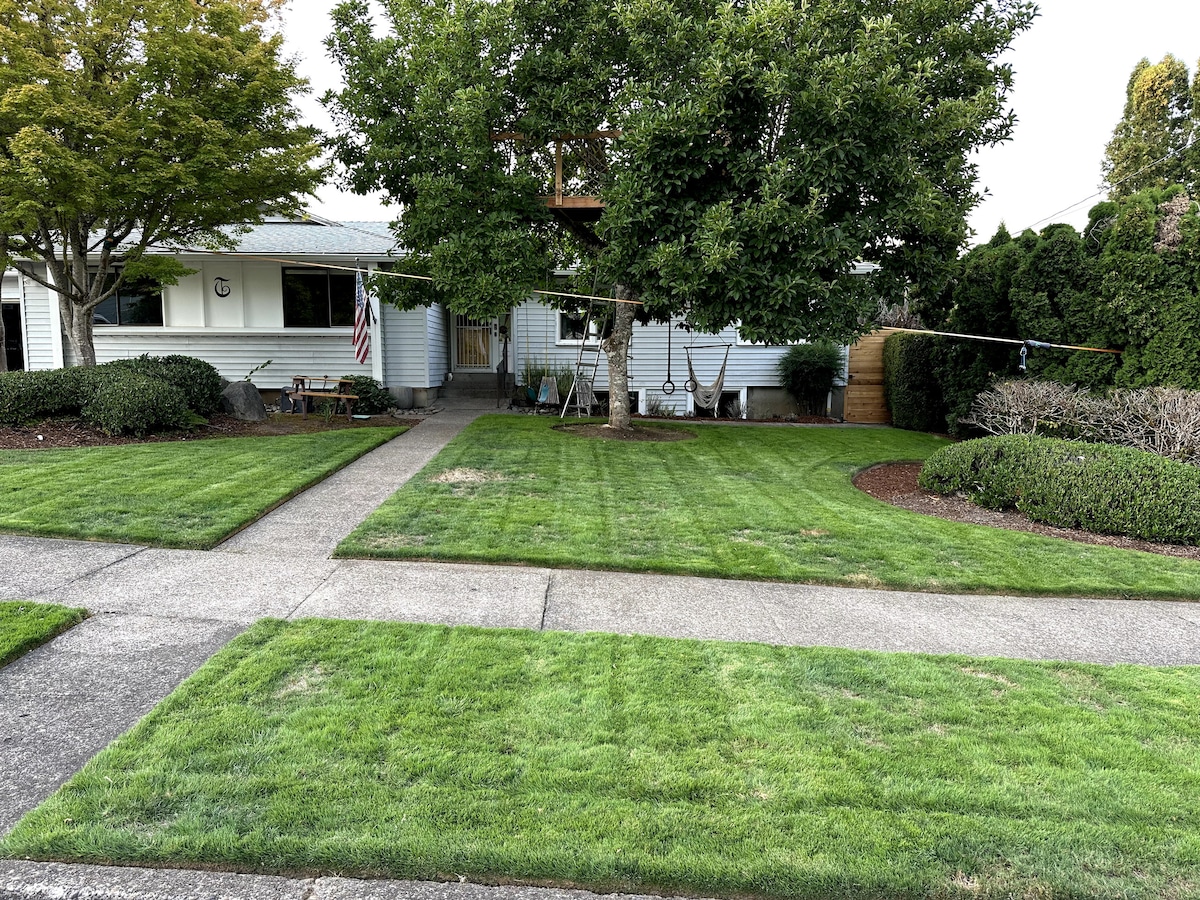 Nasz dom znajduje się w spokojnej okolicy NW Corvallis w pobliżu kampusu. Duży apartament dla gości ma własne wejście, przedpokój/biuro, sypialnię z łóżkiem typu king, salon z kanapą/telewizorem, aneks kuchenny i łazienkę. Cała przestrzeń o powierzchni 65 m² została odnowiona i zmodernizowana. Zapraszamy na wygodny materac z pianki memory, prysznic z kafelkami, pościel i ręczniki o jakości hotelowej, inteligentny zamek August, szybki internet, telewizor z Netflix, Prime, YoutubeTV (i więcej!)