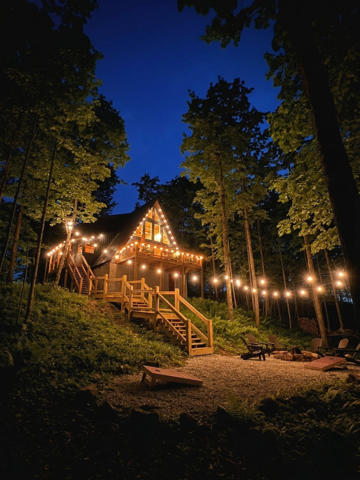 Escape to Station Camp Getaway, a luxury A-Frame home in Irvine, Kentucky, where peaceful valley views, privacy, and comfort create a memorable stay. Soak in the hot tub, unwind in the infrared sauna, enjoy the gym, gather around the fire pit, play pool or ping pong, and spend time by the private stocked fishing pond with pedal boat. Perfect for couples, families, and small groups, this is a place to reconnect, recharge, and enjoy a peaceful countryside escape.