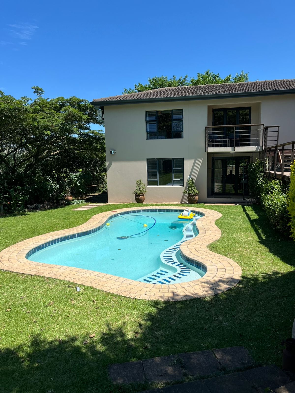 This much-loved family home is an amazing space of peace and tranquility. It is designed for outdoor living with a lovely veranda, pergola area for al fresco dining and expansive lawns with a lap pool. The area is safe and convenient with access to excellent restaurants, a woolies food the highway. House comes complete with full solar system, wifi, a work area, and a helper to allow you to relax. Central to Durban beach (20 mins), Umhlanga (25mins), airport (40mins) & the midlands/ Drakensburg.