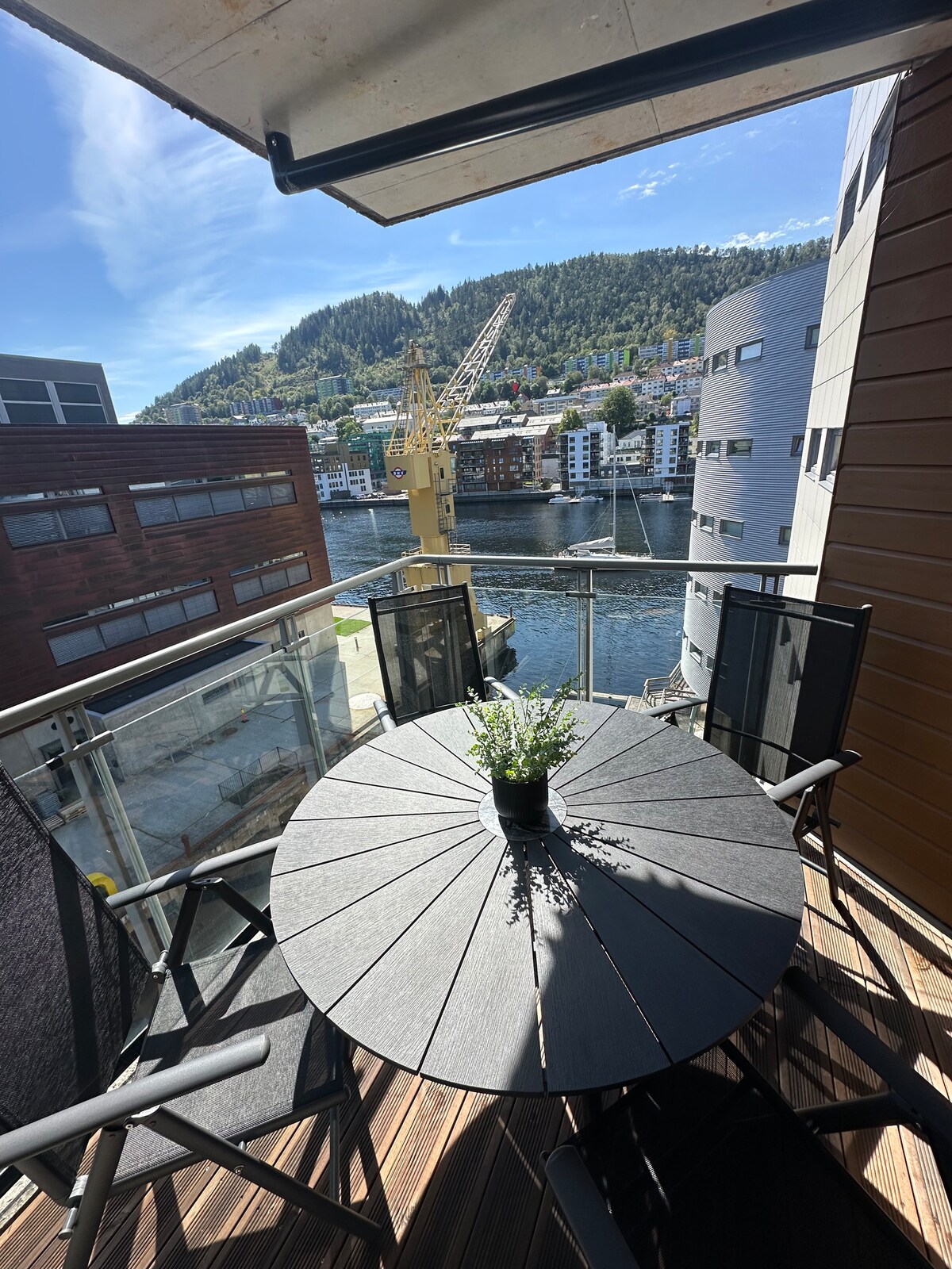 Velkommen til vår lyse og moderne leilighet. Her kan du nyte fantastisk utsikt av fjorden fra terrassen, samtidig som du har kort vei til byens attraksjoner. Området er kjent for sin rolige atmosfære og nærhet til naturen, samtidig som det tilbyr vakker utsikt over fjorden. Dette gjør det til et attraktivt sted for besøkende som ønsker å bo i nærheten av byen, men likevel litt tilbaketrukket. Familievennlig med lekeplass og matbutikk like ved. Privat parkering med egen lader for elbil (gratis)