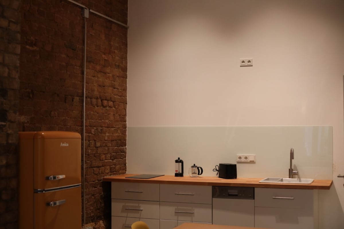 Autentyczny berliński loft artysty w tętniącym życiem, inspirującym centrum z wyluzowanym klimatem start-upu. W pełni wyposażona kuchnia ze zmywarką, lodówką retro, pralką i suszarką. Restauracje, kawiarnie i sklepy są niedaleko. S-Bahn znajduje się w odległości 900 m, a dzięki linii S1 do Wannsee dotrzesz do Berlin Mitte w mniej niż 20 minut. Idealne dla kreatywnych i odkrywców poszukujących wyjątkowego, stylowego pobytu w inspirującej, industrialnej scenerii.