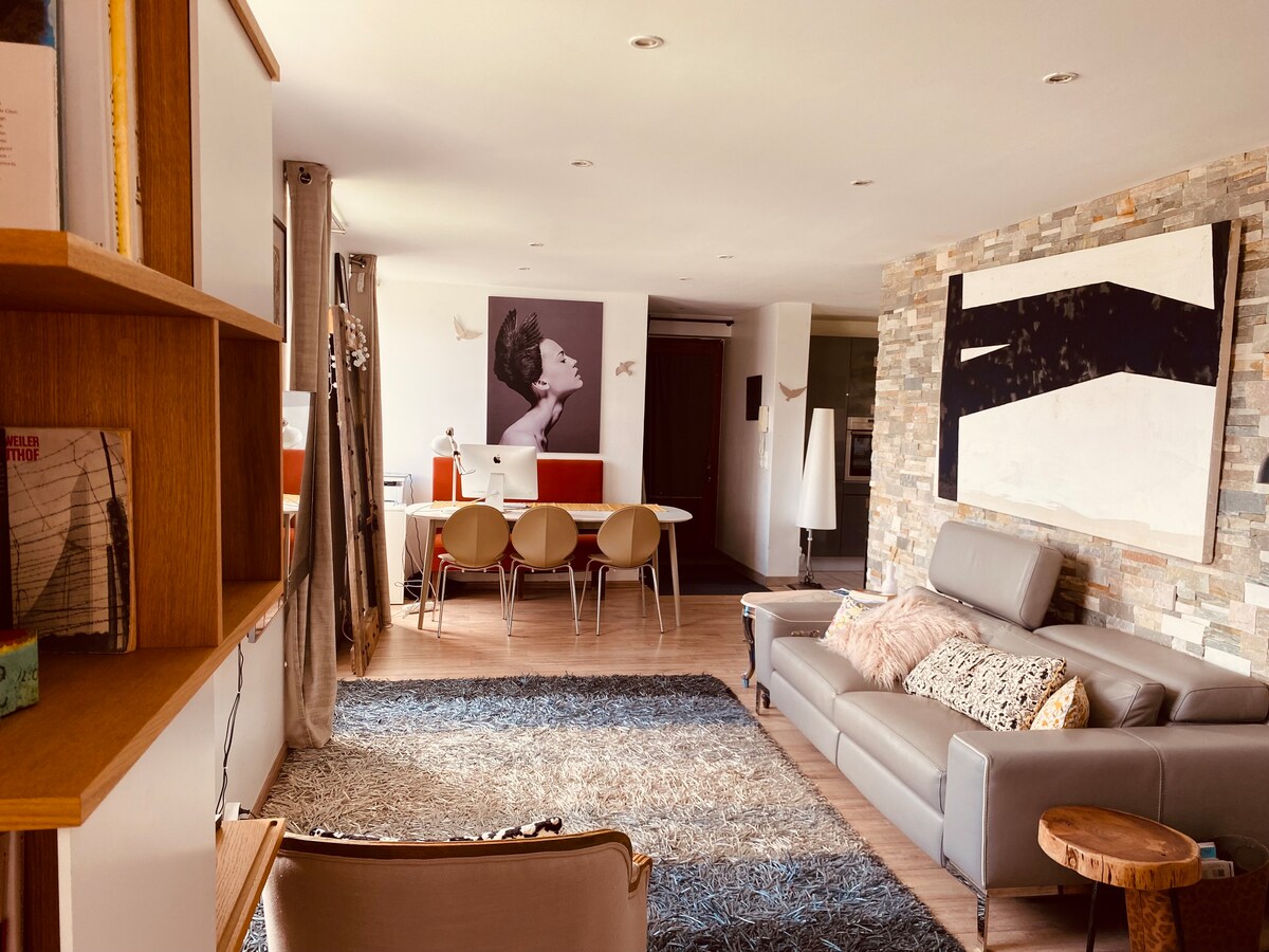 Skorzystaj z urokliwego miejsca na pobyt, idealnie położonego w pobliżu deptaków, gdzie można łatwo zaparkować. Odpowiednie dla osób podróżujących służbowo. - Dostęp do Netflix, telewizor z dostępem do internetu, bardzo szybkie Wi-Fi - Duże łóżko typu „Queen Size” 160*200 - Bar/przestrzeń do pracy - Oddzielna i w pełni wyposażona kuchnia: piekarnik, kuchenka mikrofalowa, lodówka, ekspres do kawy, czajnik - Pralka, szafa, szafka na buty - Pościel, ręczniki, suszarka do włosów, żelazko - Prywatne i bezpłatne miejsce parkingowe