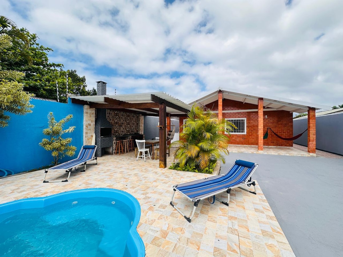 Bem pertinho da Praia (30 metros) Venha com sua família a este lugar confortável para relaxar e ouvir o som do mar *NÃO É NA RIVIEIRA* 📍 Casa situada na Praia da Enseada, no bairro Jardim das Canções, ao lado do SESC. ✨Rua tranquila e com pouco movimento 🏠Construção nova e moderna 🛋️Decoração aconchegante 🍽️Cozinha e churrasqueira bem equipadas 💧 Piscina com ozônio e aquecimento solar ☀️ No inverno, com sol, atinge no máximo 26°C. Profundidade: 1,40 m 🚐 Não aceitamos VANS.