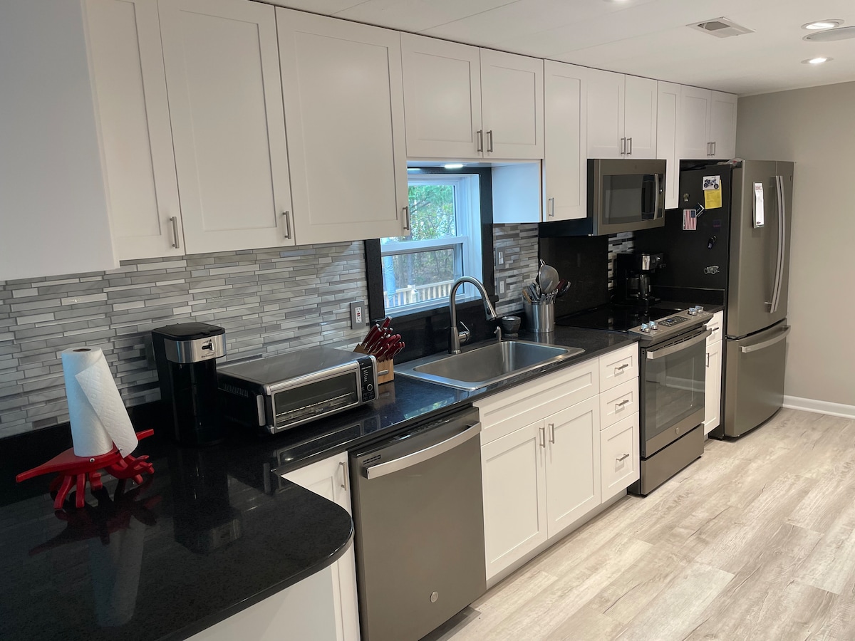 Nigdy nie widzieliście takiego nabrzeża. Witamy w Edgewater Escape, luksusowym apartamencie nad zatoką, który wisi w całości nad zatoką przy 7. ulicy w centrum Ocean City. Usiądź na werandzie nad zatoką lub podziwiaj łodzie, delfiny, ptaki, a czasami nawet foki pływające w odległości kilku metrów od werandy. Na poddaszu znajduje się duże łóżko typu king-size, a kanapa na dole wysuwa się na wygodne średnie łóżko. Niedawno odnowiony, jest w pełni wyposażony na Twoją wielką podróż lub spokojny wypoczynek:)