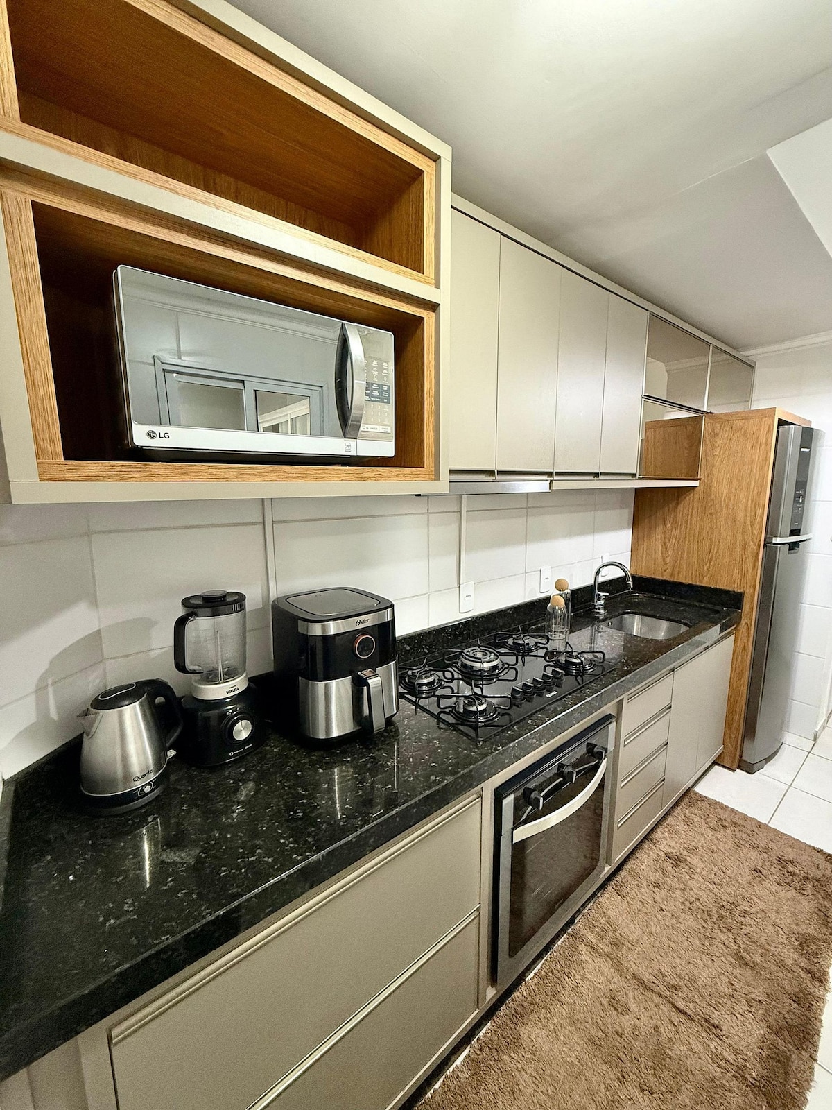 Apartament położony 25 metrów od plaży Penha, z widokiem na morze, w pobliżu piekarni, barów i restauracji, około 350 metrów od parku rozrywki Beto Carrero World. Mieszkanie ma 92 metry kwadratowe i 2 pokoje. Klimatyzacja, 1 toaleta, salon (Wi-Fi, telewizor i Netflix), zintegrowana kuchnia, pralnia, balkon z grillem i stołem do grillowania. Apartament ma 2 miejsca parkingowe i jest w pełni umeblowany, w tym wyposażony w pościel, obrus i ręczniki kąpielowe.