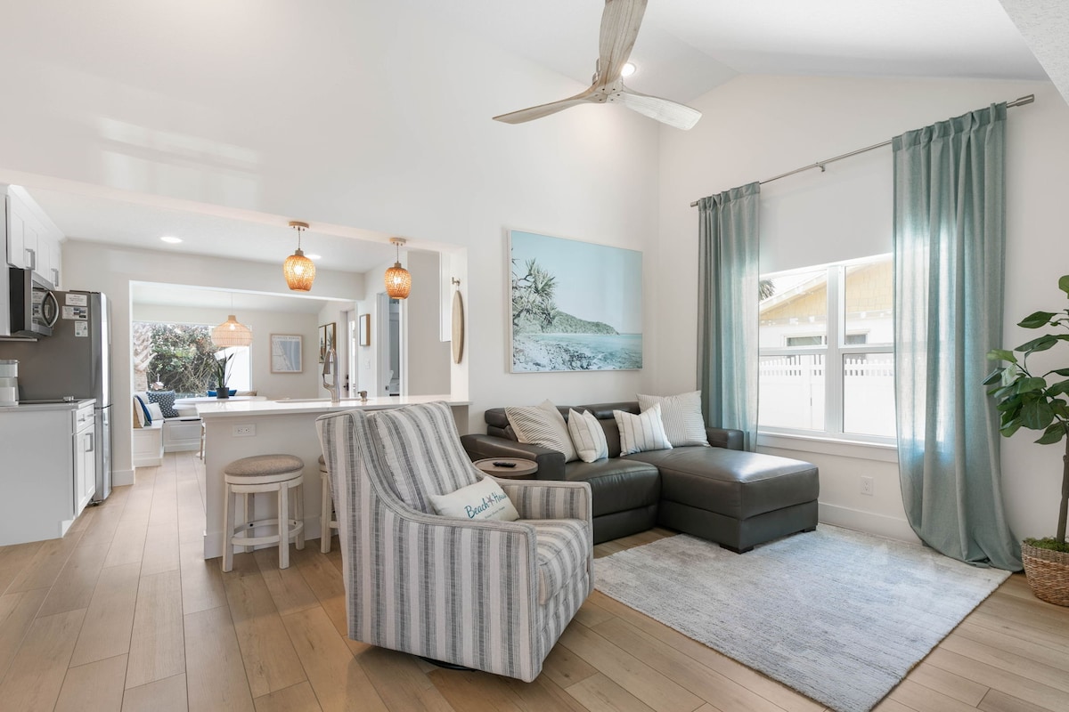 Zapraszamy na wypoczynek nad oceanem w Beverly Beach na Florydzie - na północ od Flagler Beach i idealnej dla spokoju, prywatności i panoramicznych widoków. Ten w pełni odnowiony dom z 3 sypialniami i 3 łazienkami przy plaży łączy tętniący życiem nadmorski wystrój, przemyślane udogodnienia i bezpośredni dostęp do własnego prywatnego odcinka piasku. Niezależnie od tego, czy planujesz relaksujące rodzinne wakacje, wypoczynek na plaży z przyjaciółmi, czy spokojną pracę z dowolnego miejsca, ten dom oferuje wygodę, styl i niezapomniane atlantyckie wschody słońca.