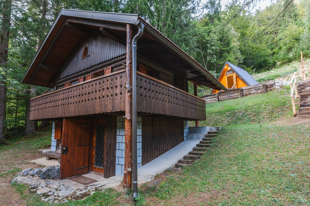 The cottage is located in the countryside in a quiet and private location near Radovljica, away from the hustle and bustle of the town and roads. It is surrounded by forest and with a great view of the Julian Alps and the Bled Castle. It is accessible by a 700-meter cart track. There is a parking space next to the cottage. Radovljica is a 15-minute walk away, and Bled is 4 km away.