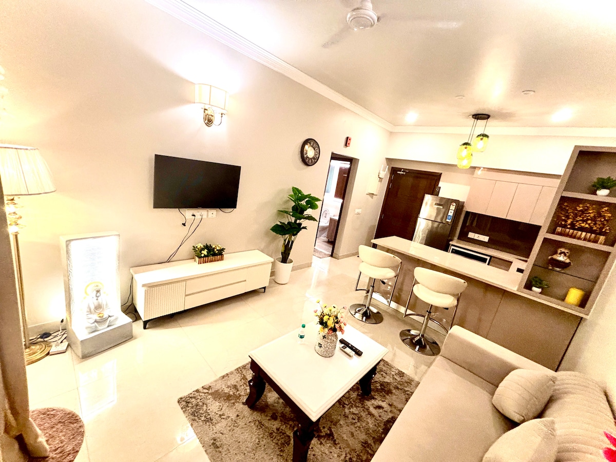 Urocze 1BHK, idealnie zaprojektowane dla par, nad tętniącym życiem centrum handlowym Gurgaon. Ciesz się stylową częścią dzienną z książkami i grami, w pełni wyposażoną kuchnią i piękną sypialnią z telewizorem/OTT. Pracuj lub odpoczywaj dzięki dedykowanemu stanowisku roboczemu i Wi-Fi o prędkości ponad 200 Mb/s. Wyjdź na balkon, by podziwiać widoki na miasto. Nasza strategiczna lokalizacja w pobliżu NH48, Dwarka Exp, SPR, Amex. Air India, TCS i DLF Corporate Greens oferują bezpłatny zadaszony parking. Inox, puby i restauracje są kilka kroków dalej. Ulepsz swój pobyt dzięki romantycznym dodatkom!