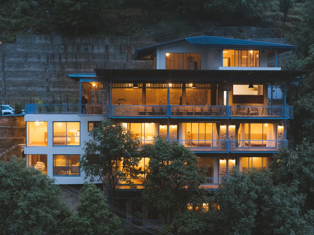 Spokojny dom na zboczu wzgórza w Mukteshwarze oferuje apartamenty typu studio i domki z wygodnymi łóżkami, prywatnymi łazienkami, balkonami i widokami na Himalaje – idealnie dopasowane do potrzeb kreatywnych osób, pracowników zdalnych i dłuższych, inspirujących pobytów.