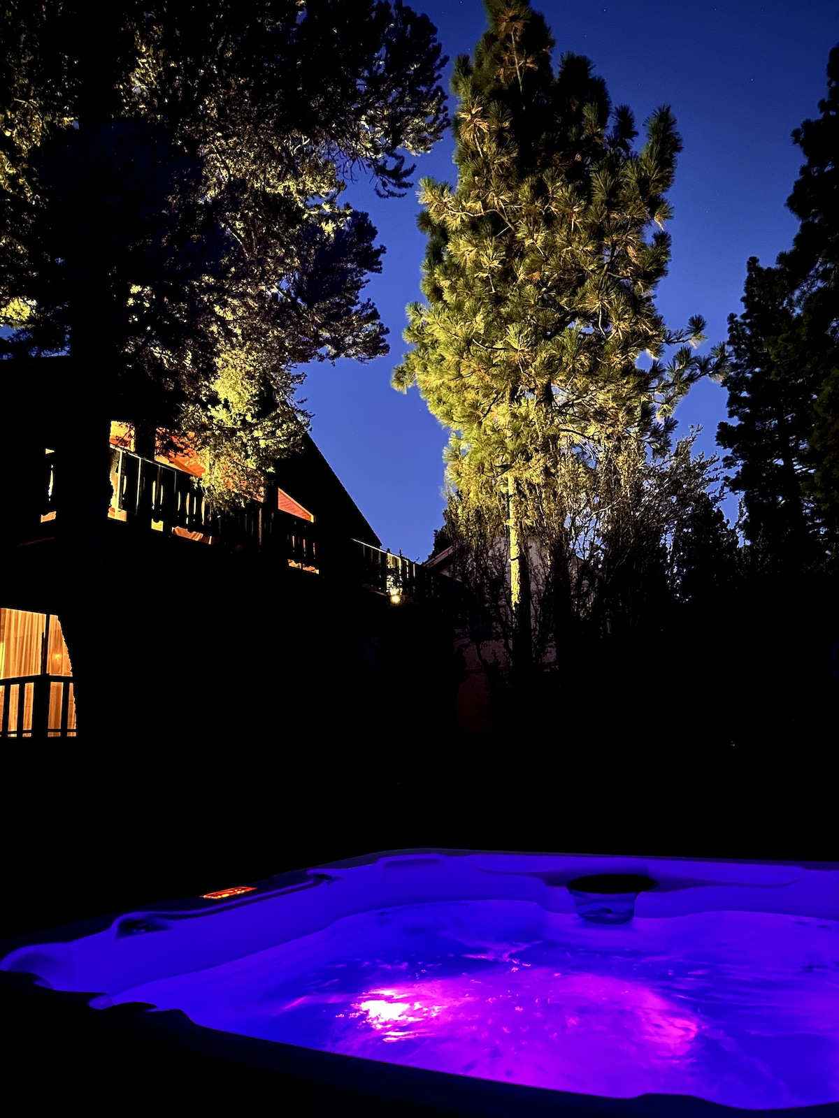 . Walking distance to the Big Bear Mountain Resort . Stunning sunsets from the deck . Pets welcome . A-Frame + Open Concept Lounge/Dining/Kitchen . Fully Equipped Kitchen w/high end Smeg + Hallman Appliances . Large Furnished Main Deck w/ Stunning Lake +Forest Views . Movie Room w/high-resolution projector . BBQ/Grill . Hiking Trails right outside our doorstep . High-speed Wi-Fi + Workspace . Central Heating + Fireplaces . Hot Tub on a covered deck offering privacy + scenic views year-round!