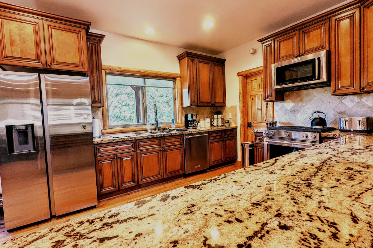 Prywatny wypoczynek! Ciesz się wakacjami w tym wspaniale odnowionym domu z 4 sypialniami i 3 łazienkami, z dużą otwartą przestrzenią mieszkalną, ogromnym nowym tarasem, miejscami do siedzenia na patio, spa, grillem i pokojem gier tematycznych Super Mario. Zachowaliśmy górski urok, dodając wszelkiego rodzaju nowoczesne udogodnienia i luksusy, z których mogą korzystać goście! Najważniejszym elementem pięknego wystroju jest huśtawka zwisająca z sufitu nad kuchennym stołem!