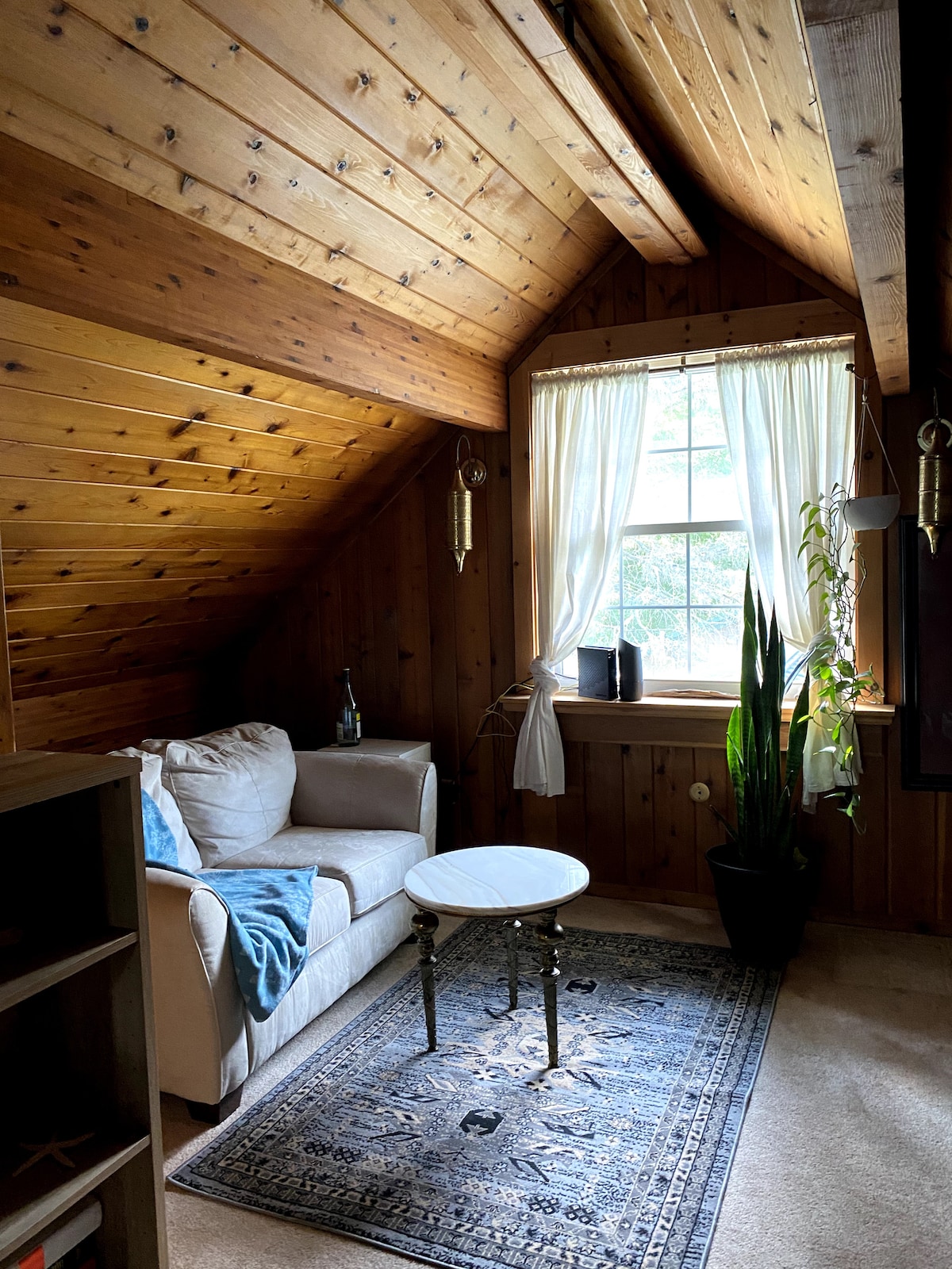 Serene Cozy Loft on acreage •High-Speed WIFI• Our towns little slice of Heaven ✨ 625 sqft Unlimited parking Less than 2 miles to Downtown Corning & few miles from Fingerlakes & Wineries Electronic fireplace Picture frame TV Sleeps 4, queen bed & Sofa Sleeper Washer & Dryer Childproof cabinets Great views, Peaceful & relaxing No cats Outdoor wood & propane fire pit Patio furniture Venue on premise an acre away! If you’re able to book, there will be no wedding during your stay.