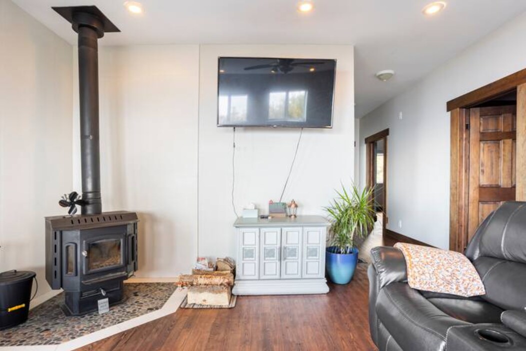 Modern relaxed lake front home with floor to ceiling windows giving you amazing waterfront views. Open bright layout with wood burning stove in the living room to warm up on chilly evenings. Fully equipped kitchen with dishwasher, microwave, oven and stove. Master bedroom has a king size bed with ensuite washroom. Second bedroom has queen size bed and third bedroom has 2 twin beds. There is also a main washroom with bathtub and shower. High speed fiber optic internet is available.