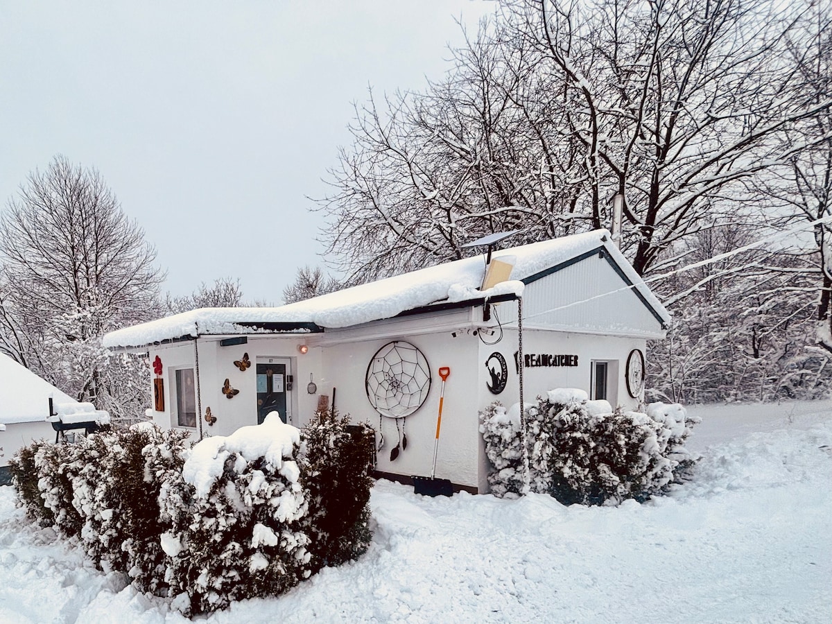 Dreamcatcher – Twoja przytulna willa marzeń w sercu rumuńskiej przyrody. Świeże powietrze, spokój, ręcznie robione dębowe łóżko, wanna z widokiem na gwiazdy, klimatyzacja i piec na drewno, w pełni wyposażona kuchnia, profesjonalna wędzarnia i wanna z hydromasażem o temperaturze 40°C na tarasie czekają na Ciebie. Marzysz o czymś wyjątkowym? Spełnij swoje marzenie – z nami w Tomnatic!