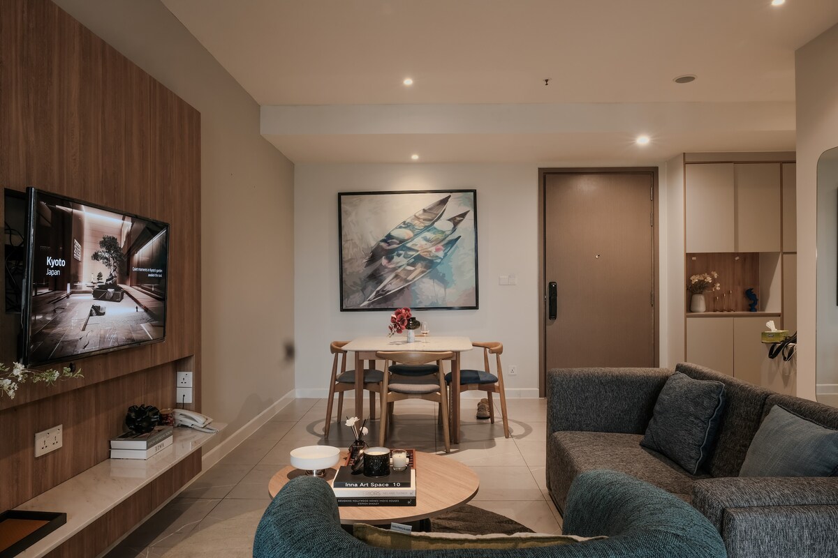 D.Signature by D.Homestay witamy! Obudź się w pokoju wypełnionym naturalnym światłem, zaprojektowanym w wyrafinowanym, minimalistycznym stylu, który daje poczucie nowoczesności i przytulności. W pokoju jest miękkie łóżko typu queen-size, zielony balkon i starannie utrzymane meble. Odpowiednie dla par, osób podróżujących służbowo lub osób szukających eleganckiego pobytu w samym sercu miasta.