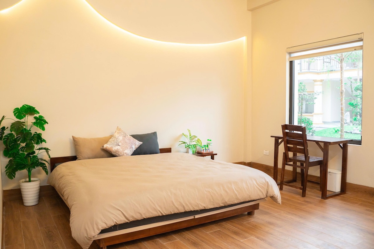 Một Retreat yên tĩnh bên bờ sông dành cho gia đình/nhóm bạn: villa 3 phòng ngủ phù hợp với nhóm 8-10 người, 3 phòng tắm rộng, bếp đầy đủ, khu giặt sấy, không gian thiền/yoga, phòng khách mở, sân vườn và chỗ đỗ xe. Không gian trang trí các sản phẩm thủ công mỹ nghệ truyền thống. Vị trí thuận tiện: 2km trung tâm thành phố, 1km ga Ninh Bình, 4km Phố Cổ Hoa Lư, 3km Hang Múa, 4km Tam Cốc, 6km Tràng An. Không gian xung quanh có nhiều cây xanh và bầu không khí trong lành rất tốt cho sức khoẻ quý khách.