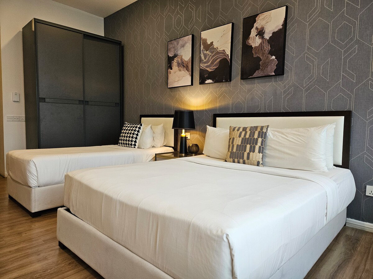 Witaj w naszym uroczym mieszkaniu z 2 sypialniami! Nasze mieszkanie znajduje się w najbardziej tętniącej życiem i bogatej w dziedzictwo Bukit Bintang, KL, gdzie można znaleźć światowej klasy jedzenie, zakupy, zwiedzanie i życie nocne. Wnętrze obejmuje 2 sypialnie, 1 łazienkę, w pełni wyposażoną kuchnię, część dzienną i piękny balkon z zapierającym dech w piersiach widokiem na panoramę miasta. Niezależnie od tego, czy podróżujesz służbowo, czy dla przyjemności, nasze mieszkanie jest idealną bazą wypadową do odkrywania wszystkiego, co KL ma do zaoferowania.
