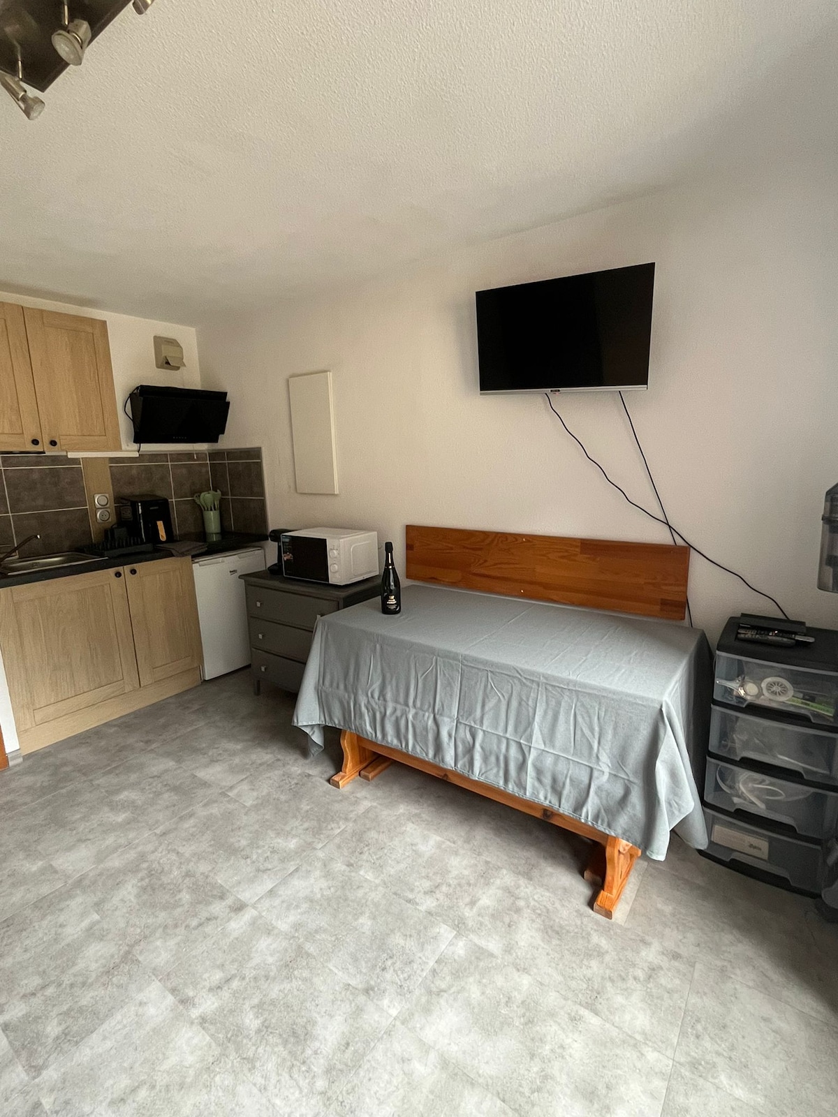 Odnowione studio z wygodną sofą dla 2 osób dorosłych i 2 łóżkami piętrowymi dla 2 dzieci. W tym domu znajduje się wyposażona kuchnia, łazienka i oddzielna toaleta. Możesz w pełni cieszyć się balkonem z 2 leżakami i stolikiem bocznym z widokiem na góry. Zakwaterowanie na szczycie starego ośrodka Drouzin-le-Mont i szlaki turystyczne. To idealne miejsce, aby cieszyć się orzeźwiającymi i spokojnymi wakacjami, blisko natury.